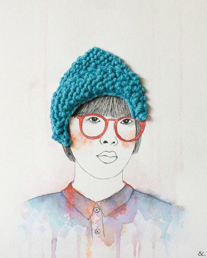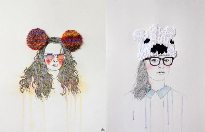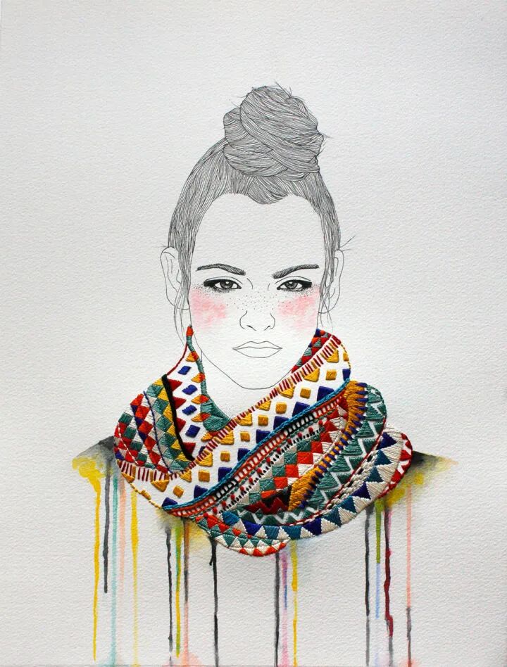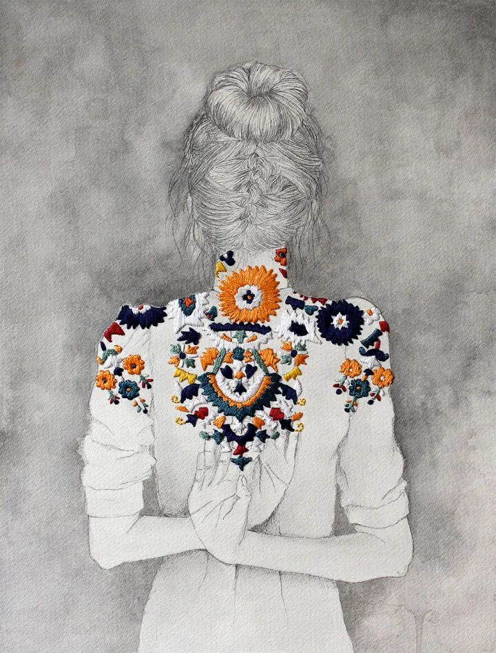 之所以说伊兹亚娜·苏海米是一位非常具有创意的刺绣艺术家,是因为,在她的作品中,不仅仅只有刺绣,还有用铅笔和水粉画成的画作。
