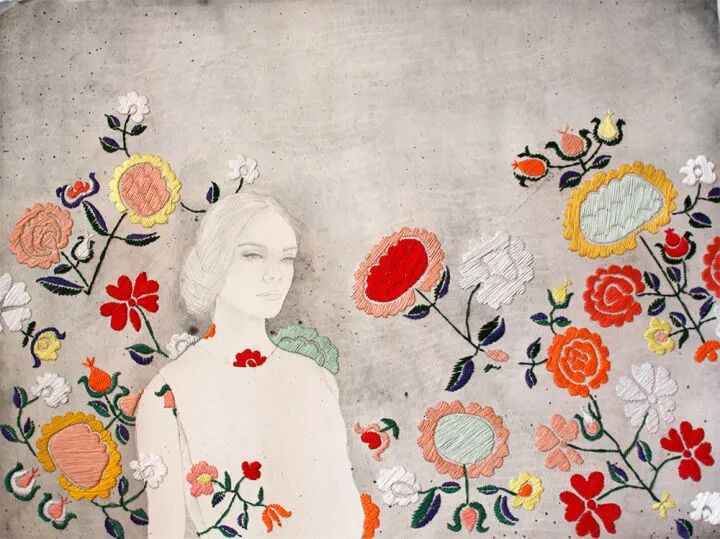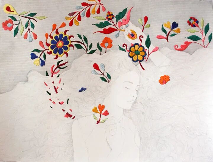 伊兹亚娜·苏海米十分巧妙的将刺绣和画作结合到了一起,每一幅作品都充满了异样的美感,让人沉醉。