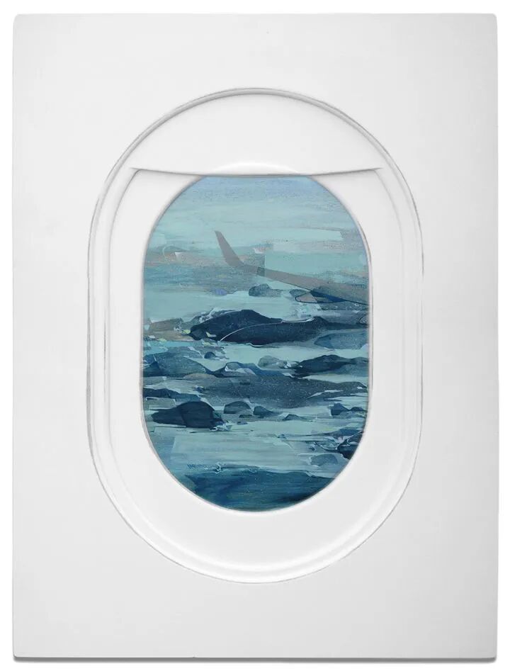 在飞机上,我们可以选择打开窗户或者关上窗户,不过关上窗户后,只能看到一片黑暗,假设关上窗户也可以看到吉姆·达林绘制不同地区国家的风景,或许也是一种美妙的体验,