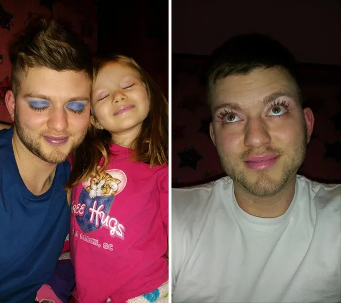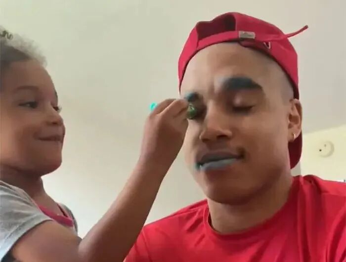 事实上,为了让自己的女儿感到快乐,父亲们愿意做任何事,在一个地方不动,让自己的脸当成女儿的画板并不算什么,在一起快乐的时光,重要过一切。接下来,就让我们一起看看女孩们在父亲脸上的涂鸦吧,看看哪一个父亲更“妖艳”。
