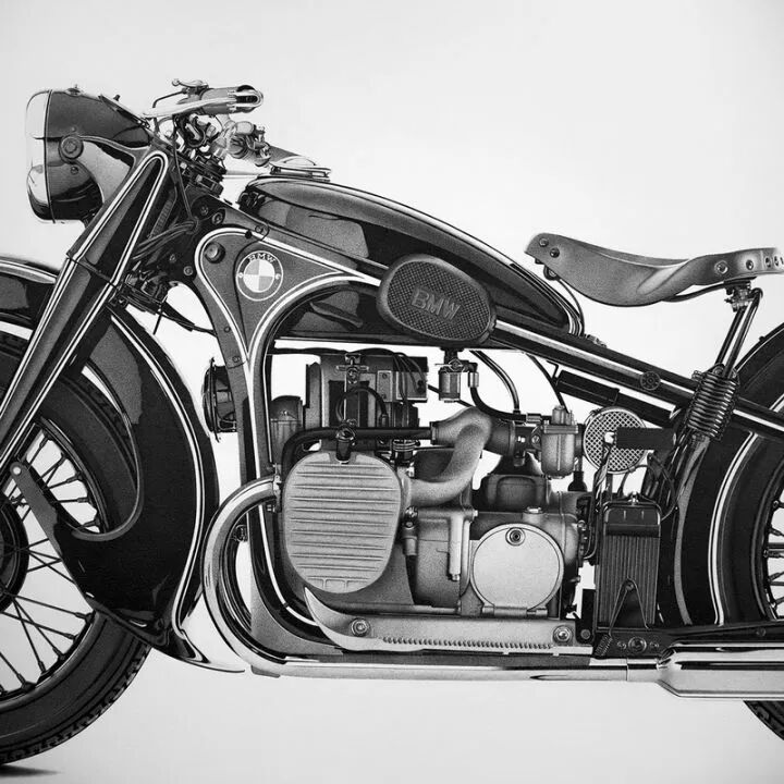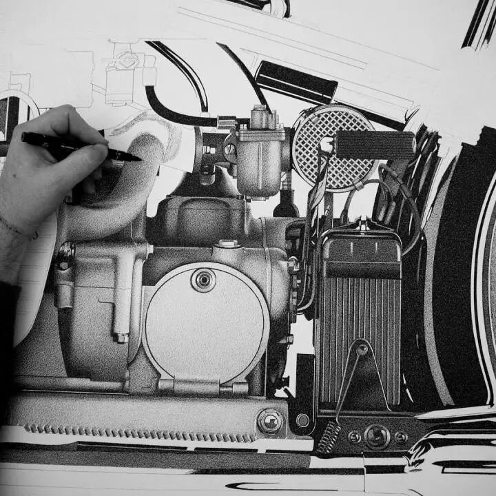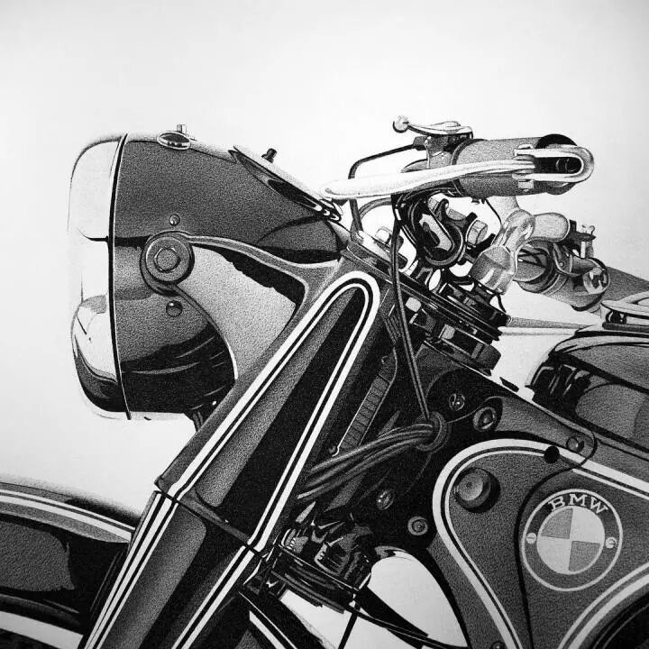 这幅超写实的摩托车,小到螺丝和转折都细致到无与伦比。当然,不只是这一幅超写实作品,亚历山德罗·帕格里亚还有许多手绘作品,下面就来一起欣赏一下吧。
