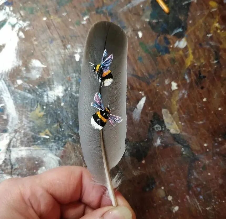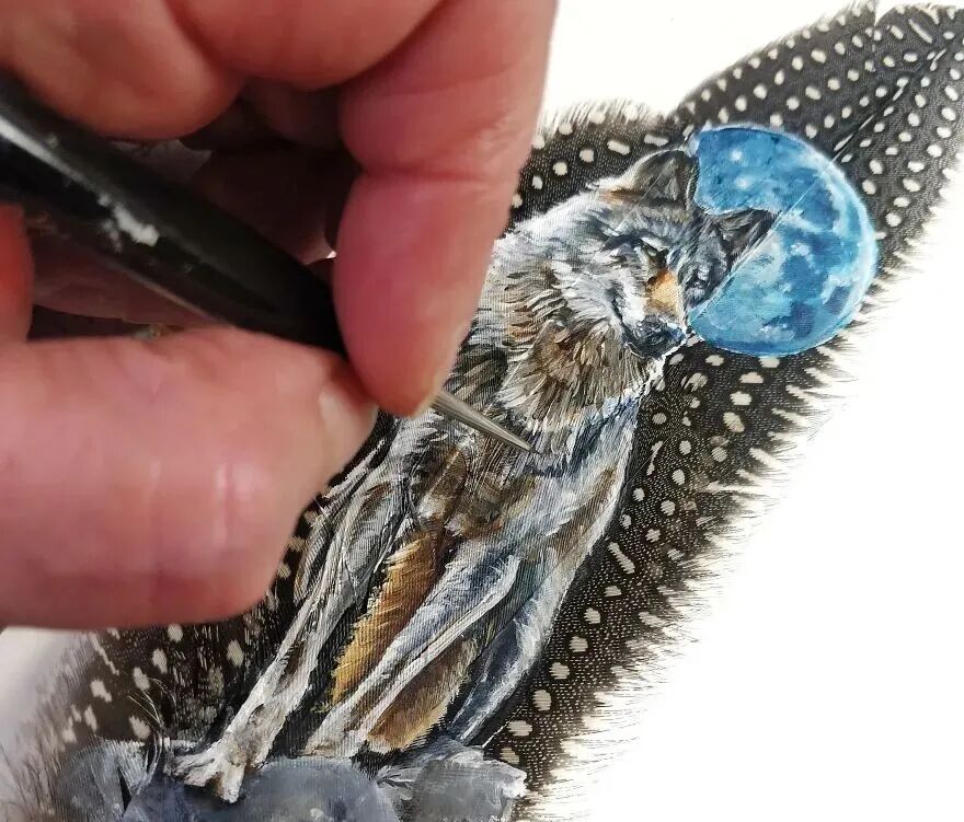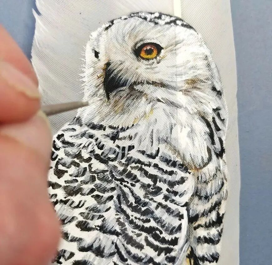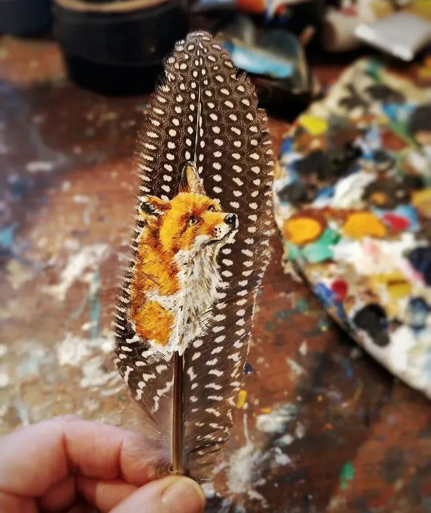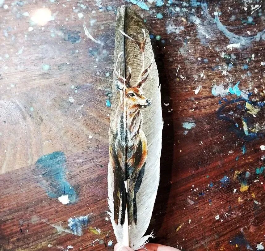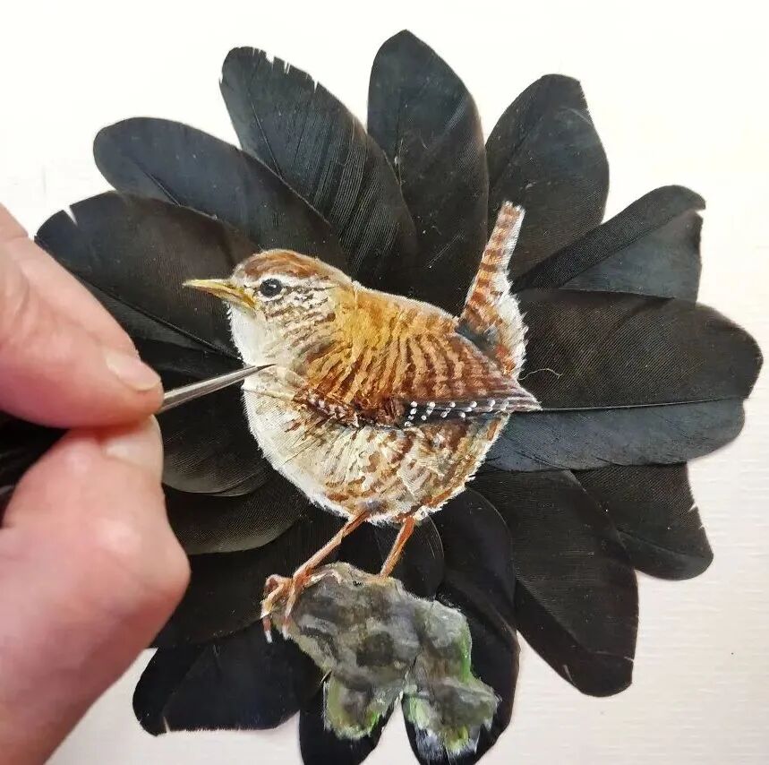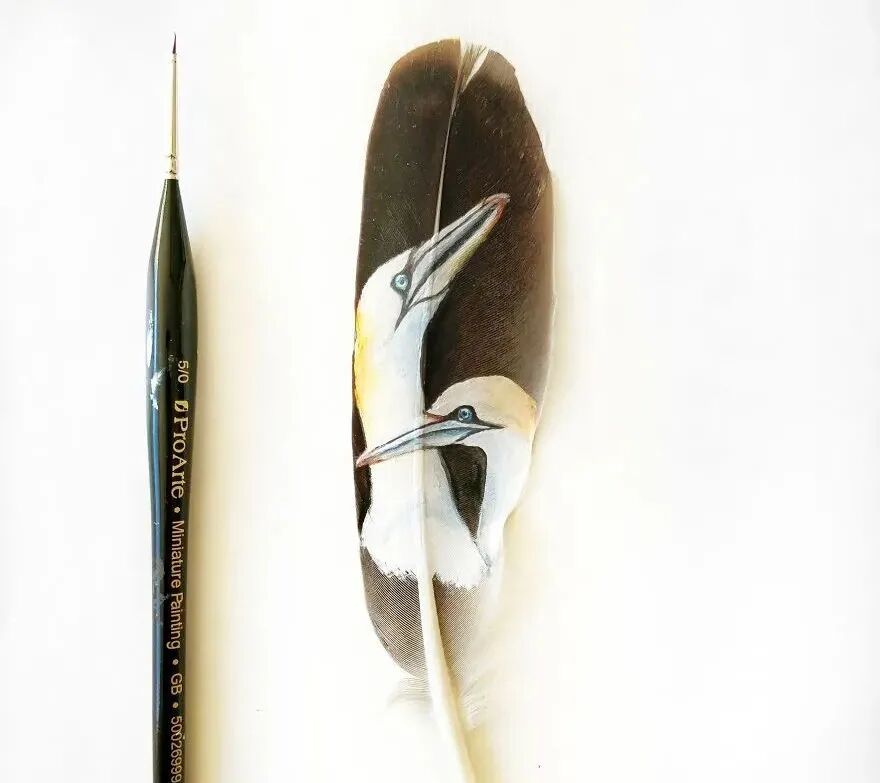 画家们可以在树叶上绘画、在石头上绘画、在水果上画画,偏偏每一幅画作都非常精彩,小绛今天再来为大家介绍一位特别的画家,他绘画的材料并不是纸张,也不是画布,而是一根根鸟类的羽毛。