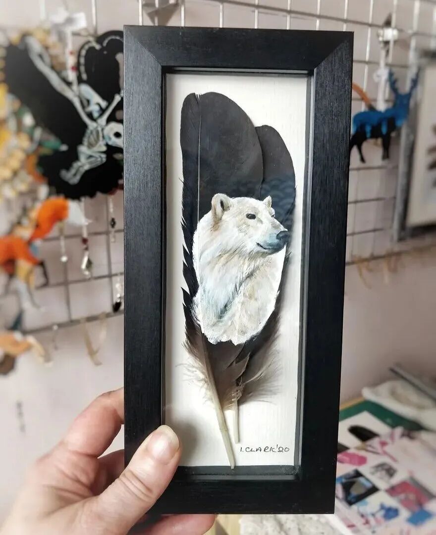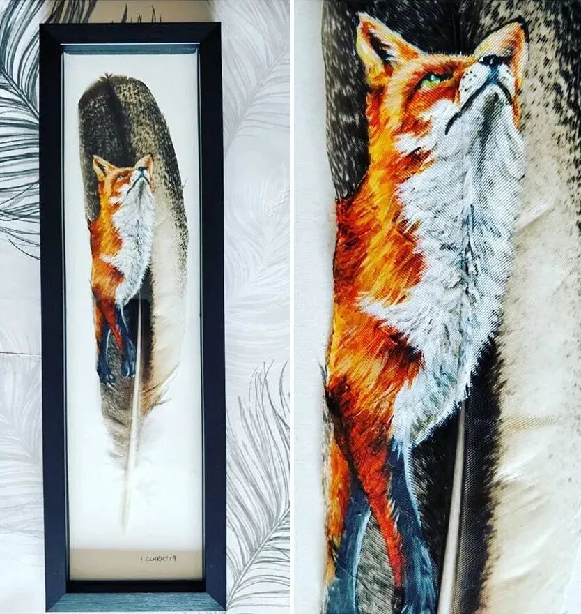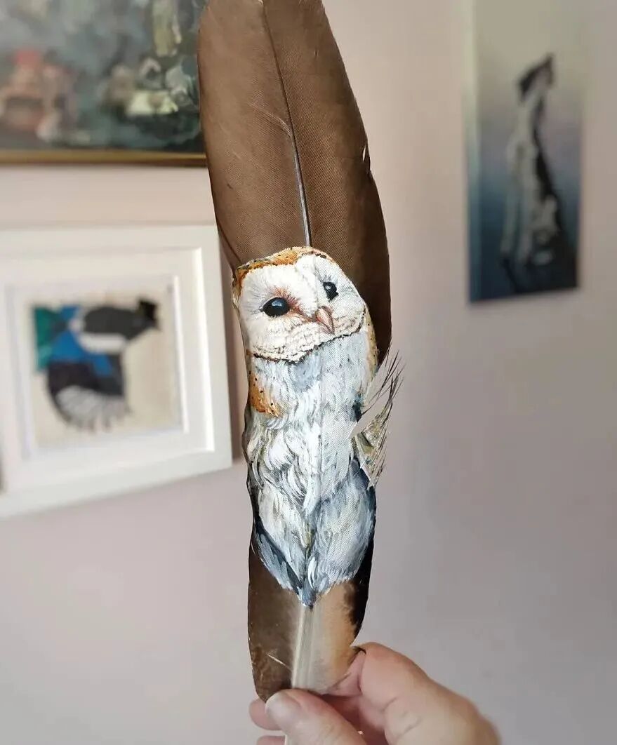 不过,伊莫金·克拉克却完美地掌握了羽毛画作的技巧,由她创作的每一幅羽毛画作都极其精彩,丝毫不比在纸面上的作品逊色,伊莫金·克拉克从2013年就开始在羽毛上绘画,到今天为止,伊莫金·克拉克已经在羽毛上画了7年多了。