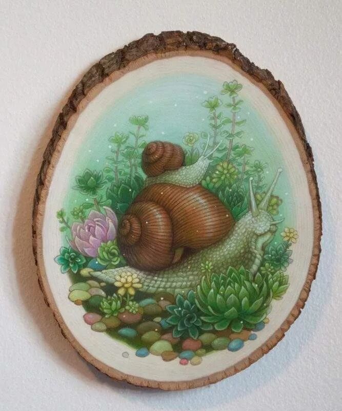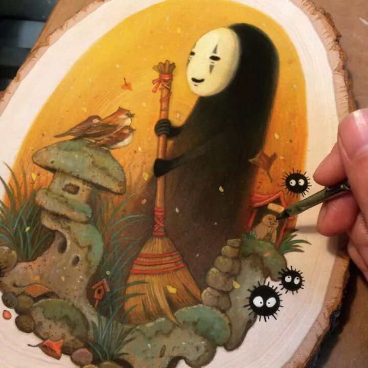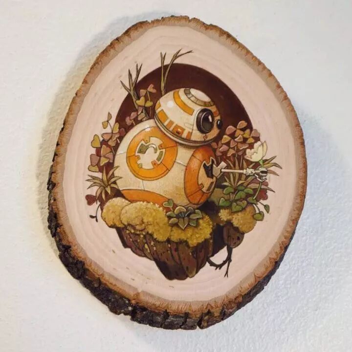 当然,单单是重新绘制这些作品是不够的,Phoenix Chan的画作特别之处,是这些作品都是画在木头上的,独特的木质纹理加上一幅萌萌的卡通人物,这两者的组合,让作品更吸引人们的目光。