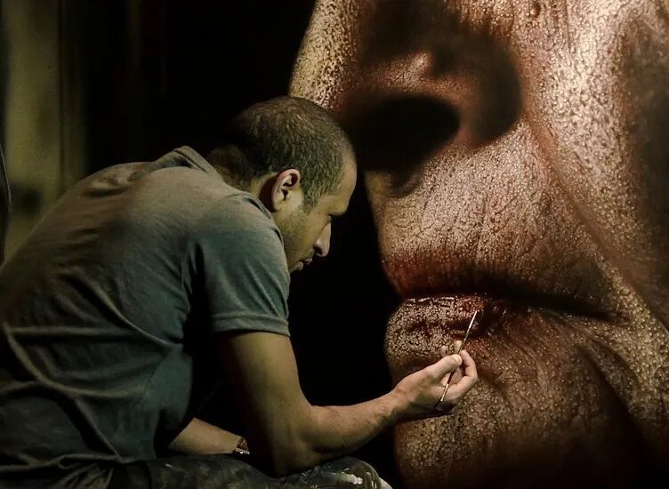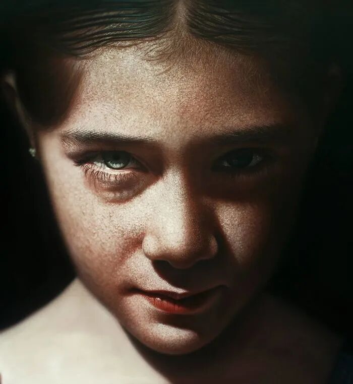 卡马尔基的超写实作品,细致到了极点,即使放大几倍去观看,也可以看到非常清晰的发丝和人物脸上的粉刺,许多人看到这样超写实的人物肖像,都称其是一位疯狂的画家,只有疯狂的人,才能画出这么极致的作品。