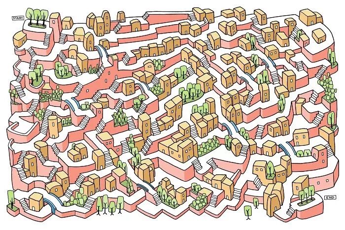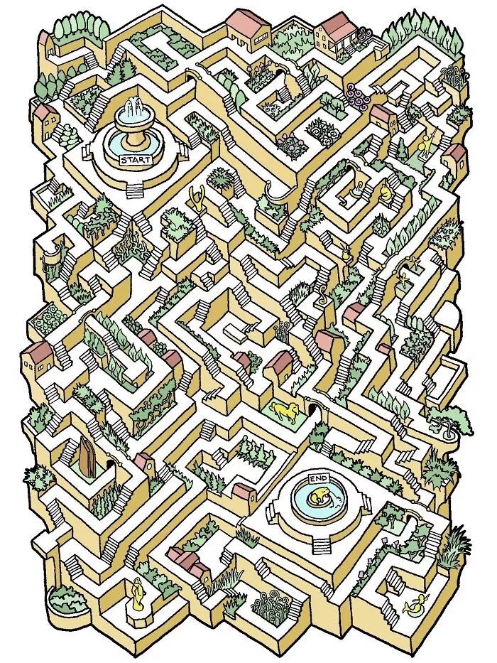 迷宫的历史源远流长,据油画酱了解到,迷宫可以追溯到5000年前,几乎每个国家都建造过迷宫一样的建筑物。迷宫的乐趣就在于终点就在眼前,下一个转角或许就会出现奇迹。