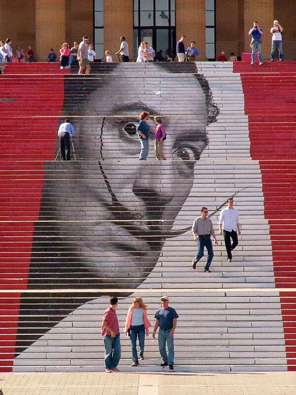 费城艺术博物馆的楼梯,上百级阶梯组成了艺术家萨尔瓦多·达利的肖像,那一年达利的作品正在馆中展出。