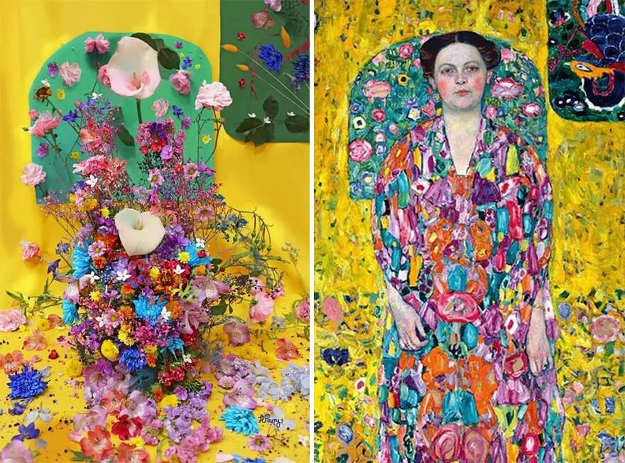 今天小绛要跟大家分享的这位艺术家,就用鲜花重新诠释了一些著名的古典画作,以及现代有名的绘画和照片,这位艺术家就是花艺师哈里特·帕里,花艺也可以算到艺术范畴里,属于装饰艺术的一种,哈里特·帕里运用自己丰富的花艺知识,用花束来构图,再现了那些著名的绘画和照片,将花艺带到了一个全新的艺术高度。
