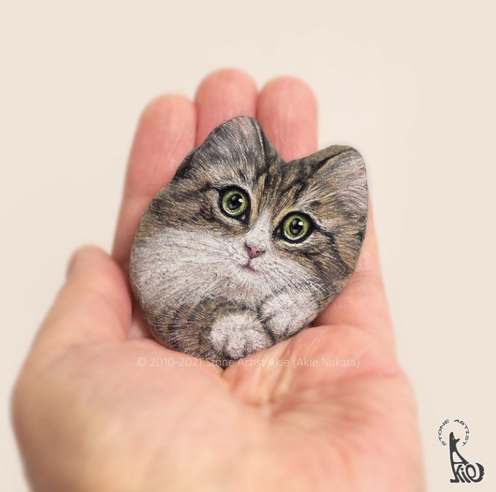 简单了解完10000小时定律,先让我们一起来看看这个定律的践行者。这位践行者,就是今天小绛要为大家介绍的艺术家,她来自日本叫做中田昭惠,中田昭惠是一位擅长在石头上绘画的艺术家,从事石头画近10年的时间,累计创作石头画的时间虽然没有统计,但是,小绛估计早就超过了10000个小时。