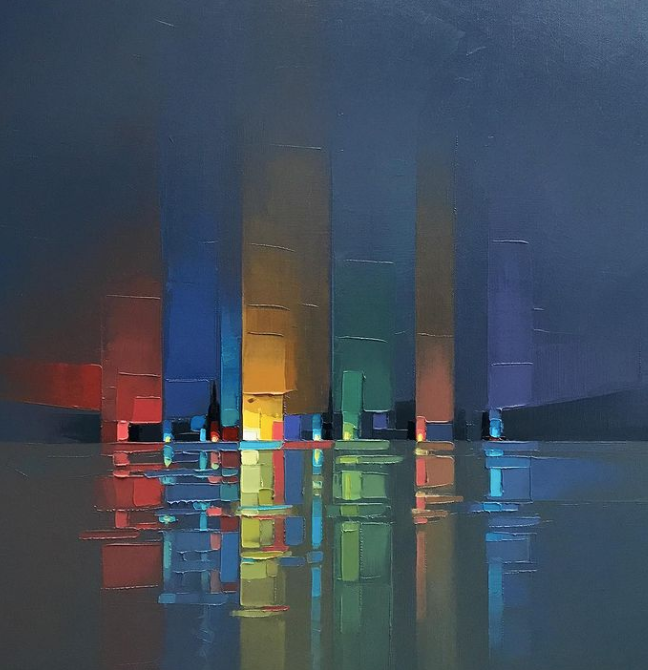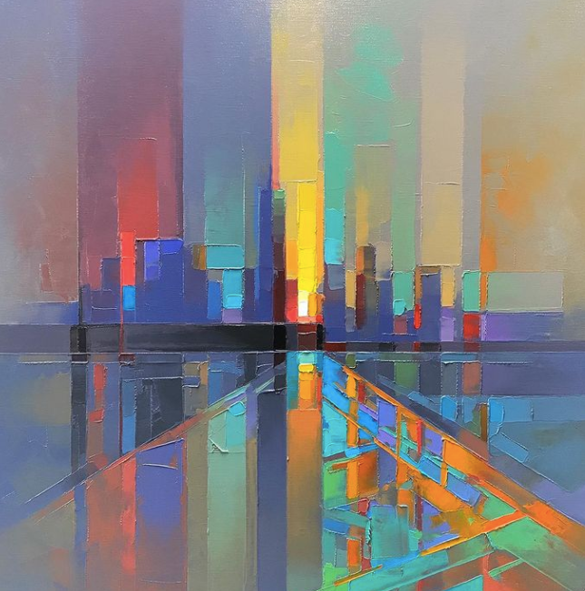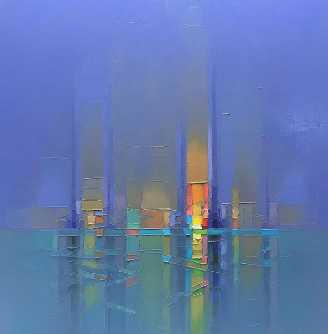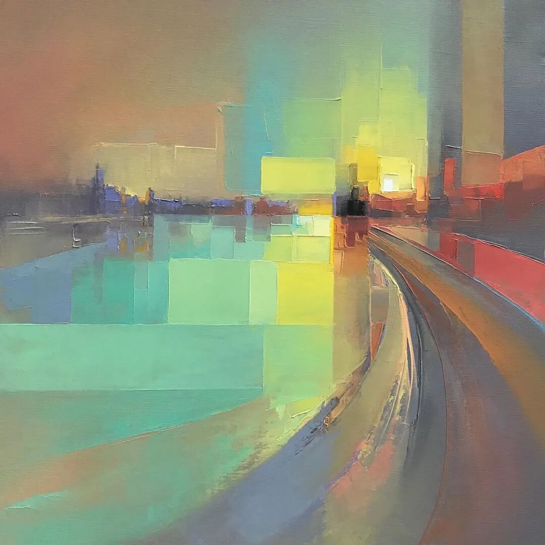但是对于擅于自我挑战的艺术家来说,这都不算事儿,来自英国的杰森·安德森就大胆挑战“刀画”,用调色刀来呈现独特的纹理美感,画出了充满活力的城市景观绘画,画作本身就像是一首歌曲,充满了律动感。