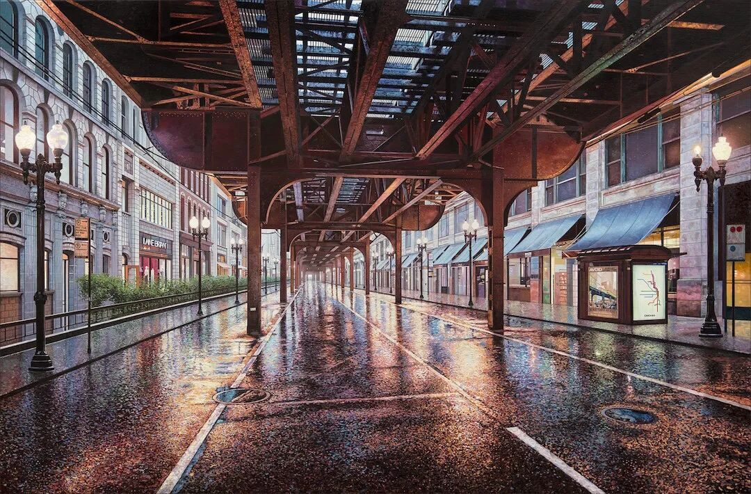来自英国的当代艺术家内森·沃尔什,就用超写实的形式,创作了非凡的城市景观、建筑绘画,真实地还原了城市风景的原貌,每幅写实油画,都有着完美的构图、光线和纹理,让人看了,很难相信它不是一张摄影作品,而是一张手绘的绘画作品。