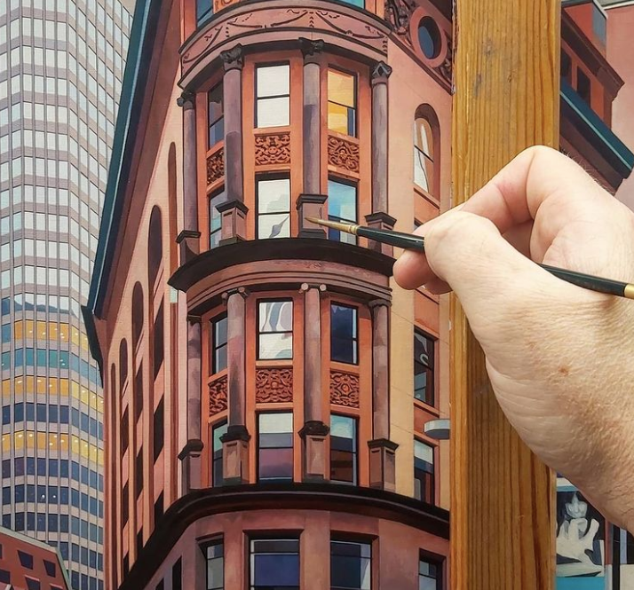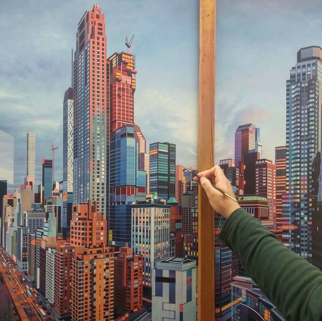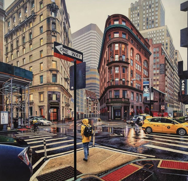 小绛在这几年的时间,已经数不清跟大家分享了多少位超写实主义画家了,他们创作的题材和主题多种多样,五花八门,却没有一个是以超写实的方式来描绘城市建筑的。之前的很多关于城市景观的绘画作品,大多以水彩、水粉等方式呈现。