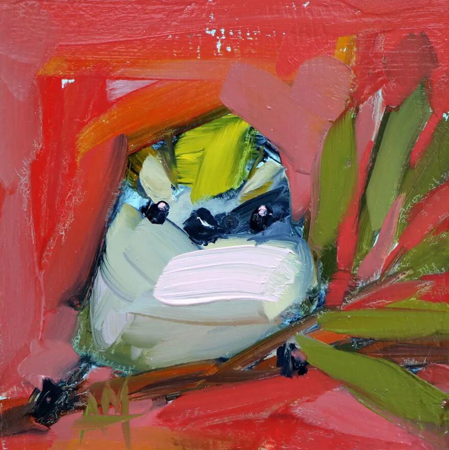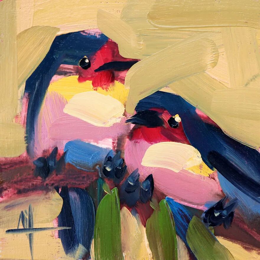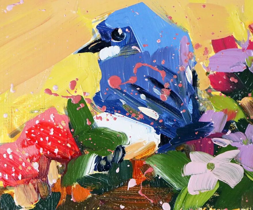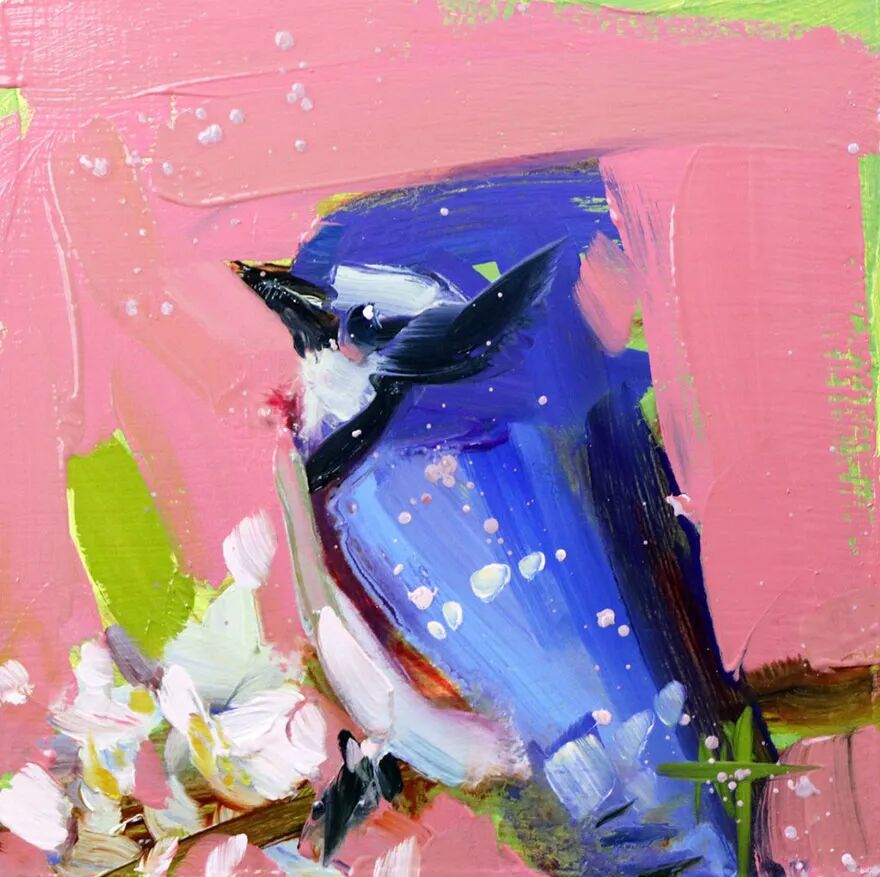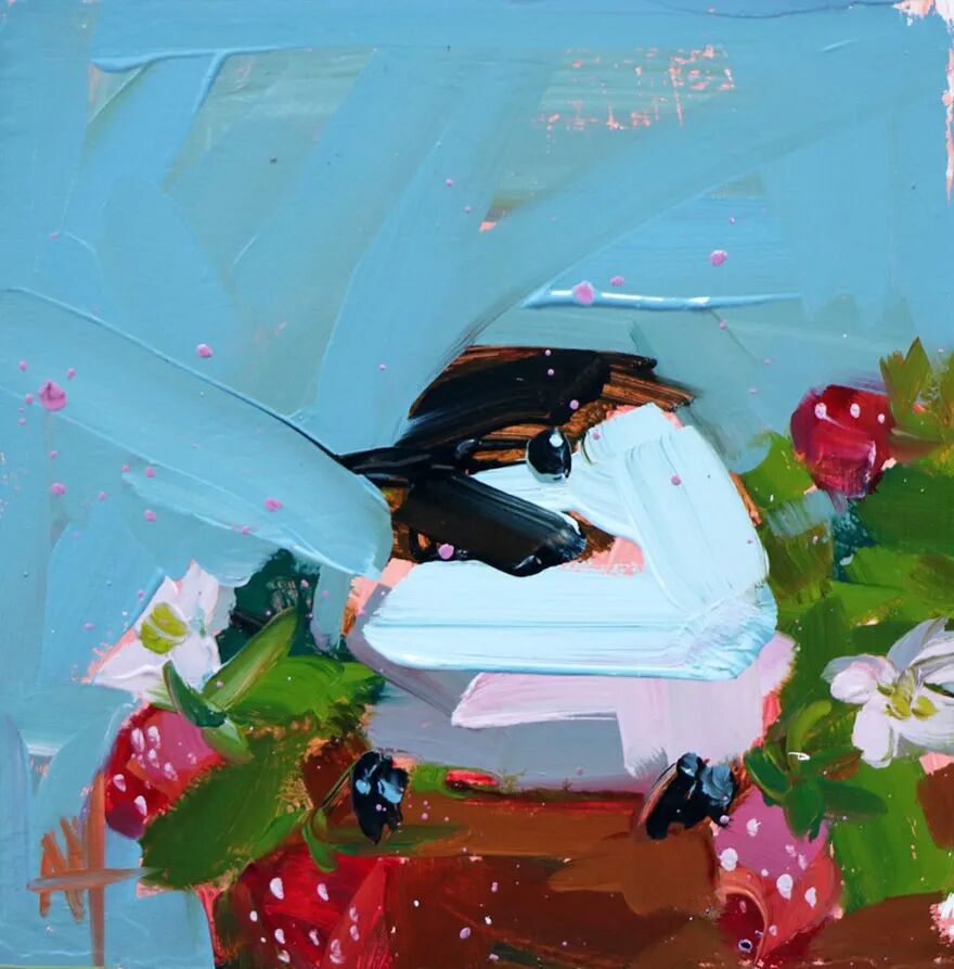 安吉拉·莫尔顿的画作笔触非常大,通常鸟类的身体,她只要3、5笔就可以完成,一只小鸟需要画的笔数我们都可以数的过来,按说这样大笔触的作品,根本无法将鸟儿描绘得精彩,偏偏安吉拉·莫尔顿画的鸟儿非常灵动,简直就像是将它们画活了一样。