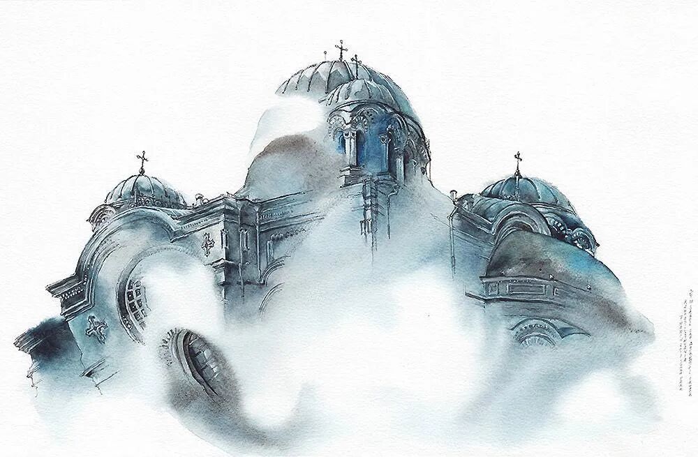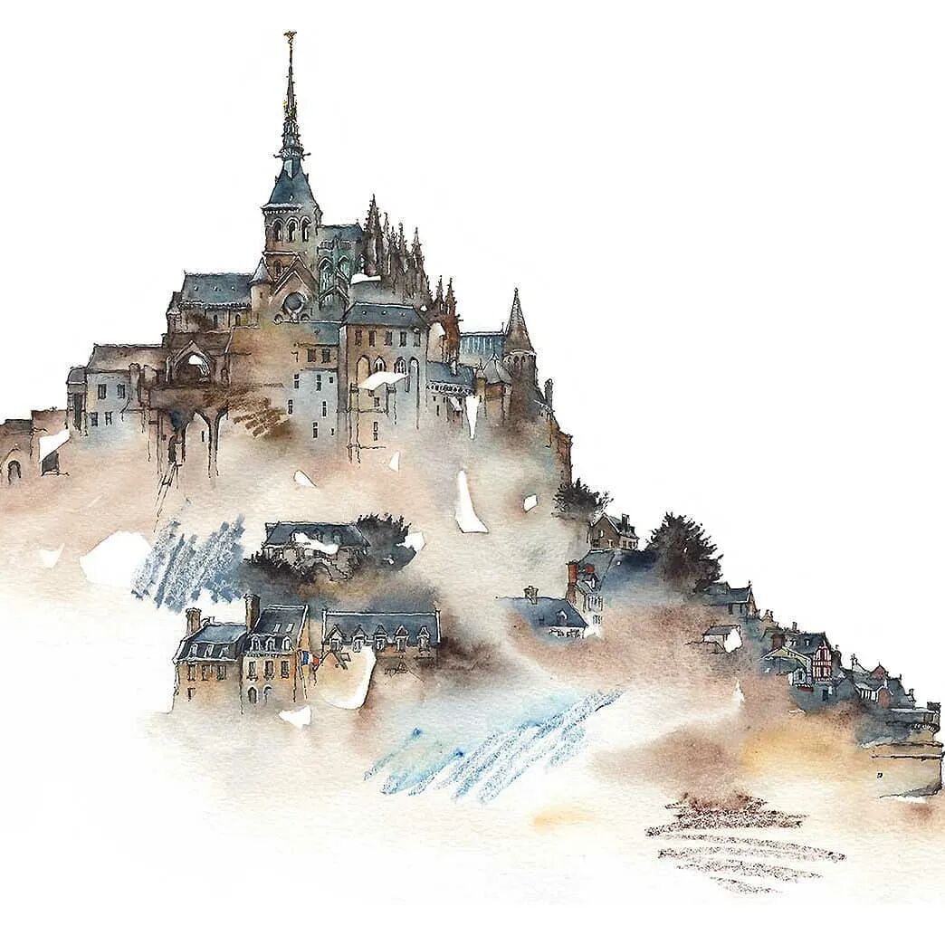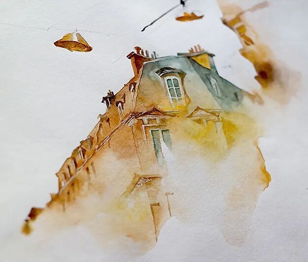 我们常常见到,用水彩的形式来表现风景主题的绘画作品,通透的色彩,以及流动性,能够尽情表现景色的意境,浓淡之间,营造出虚实关系,非常美妙。其实,利用水彩的特性来画建筑,也是一个不错的主意。