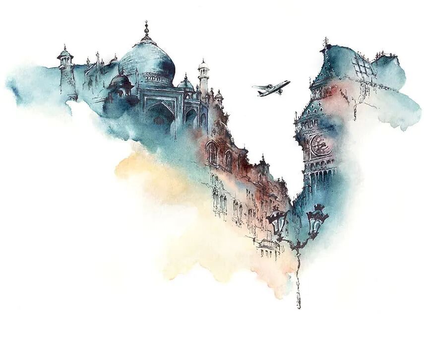 来自韩国的水彩画家桑加·帕克,就是一位擅于用水彩来画建筑的艺术家,之前曾是一个平面设计师,她是个旅行达人,她常常走到哪里就画到哪里,在旅行中,体验人生,创作作品,是桑加·帕克觉得最惬意的事儿。