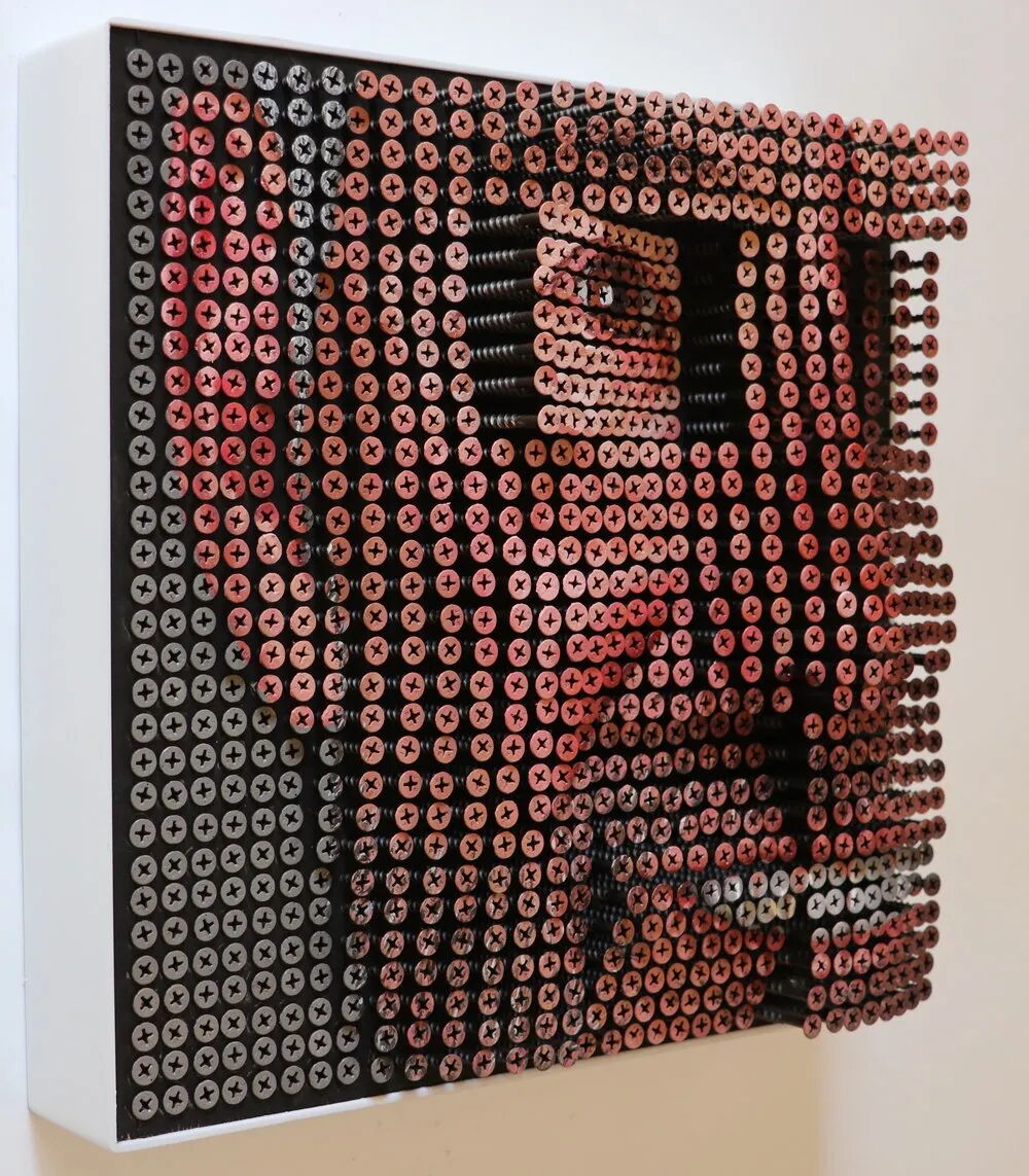 不管是绘画还是雕塑,安德鲁·迈尔斯算是把创意玩到了极致,至少,螺丝钉被他玩明白了。观看这位艺术家的作品,需要带着一些敬畏之心,因为,安德鲁·迈尔斯的每一件作品中,都融入了用心。对结构的一丝不苟,每一根螺丝钉完美地排列组合,以及充满深度的层次感,都能看出艺术家投入的精力和热情。