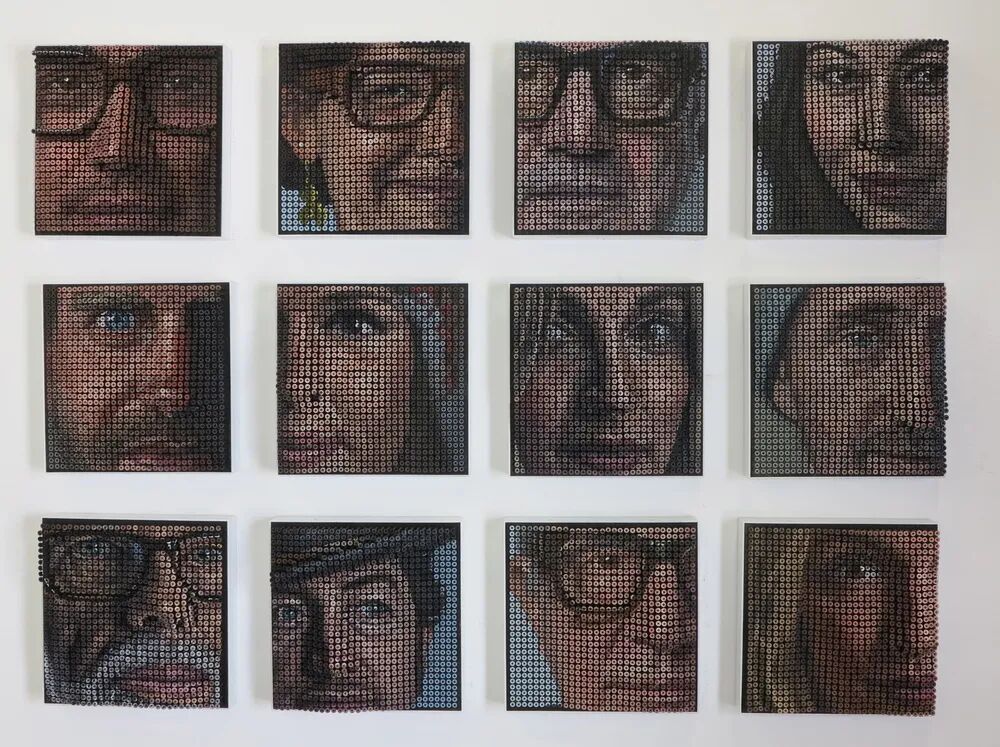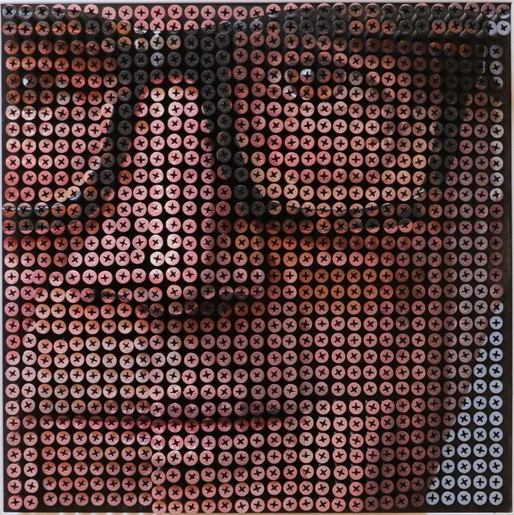 除了静物之外,安德鲁·迈尔斯更擅长的是用钉子来表现人物面部肖像,接下来,我们就一起欣赏一下这位艺术家的硬核艺术作品吧。