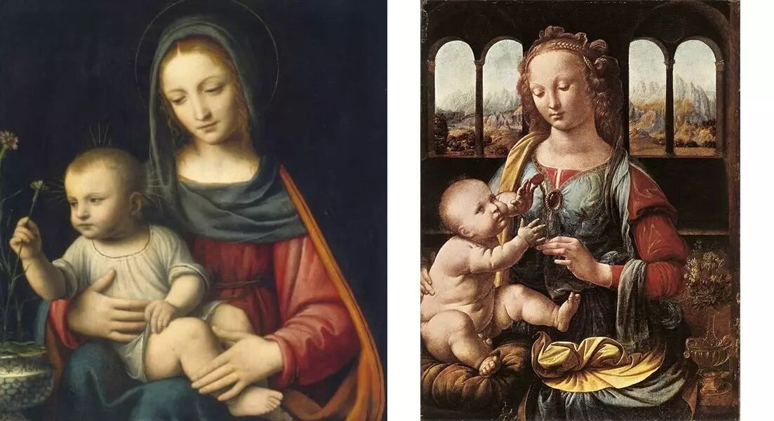 左图《康乃馨和圣母》、右图《持康乃馨的圣母》