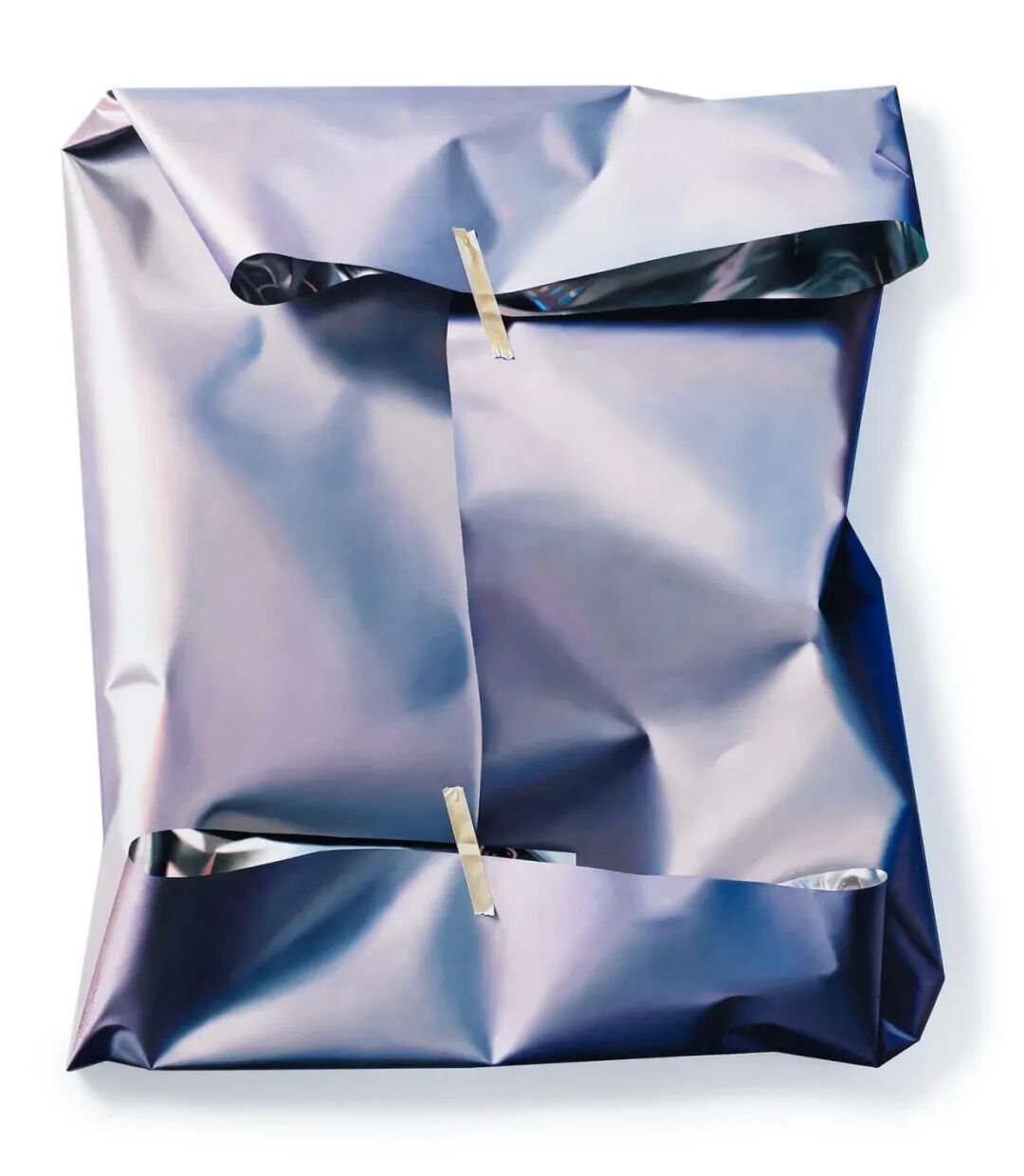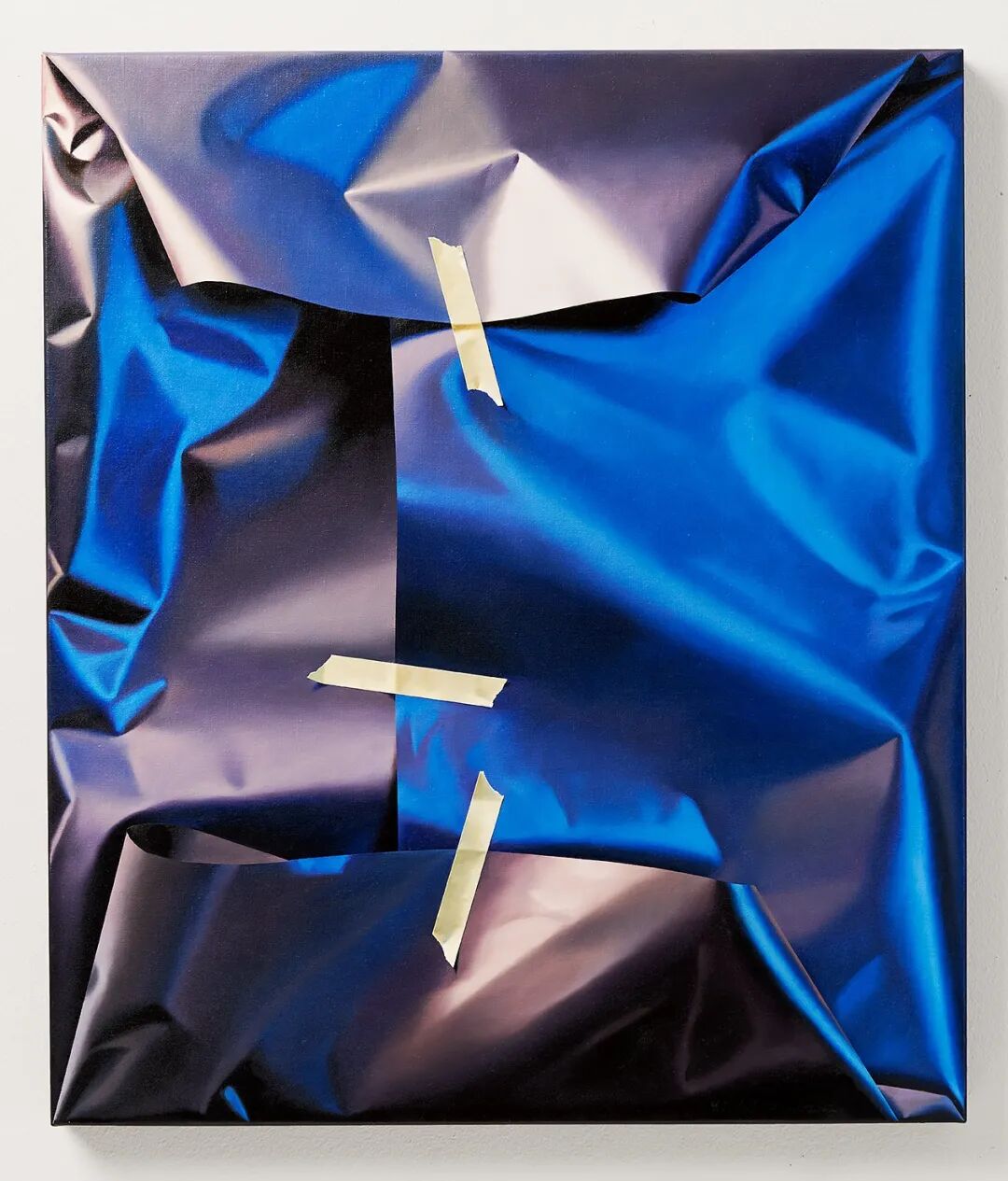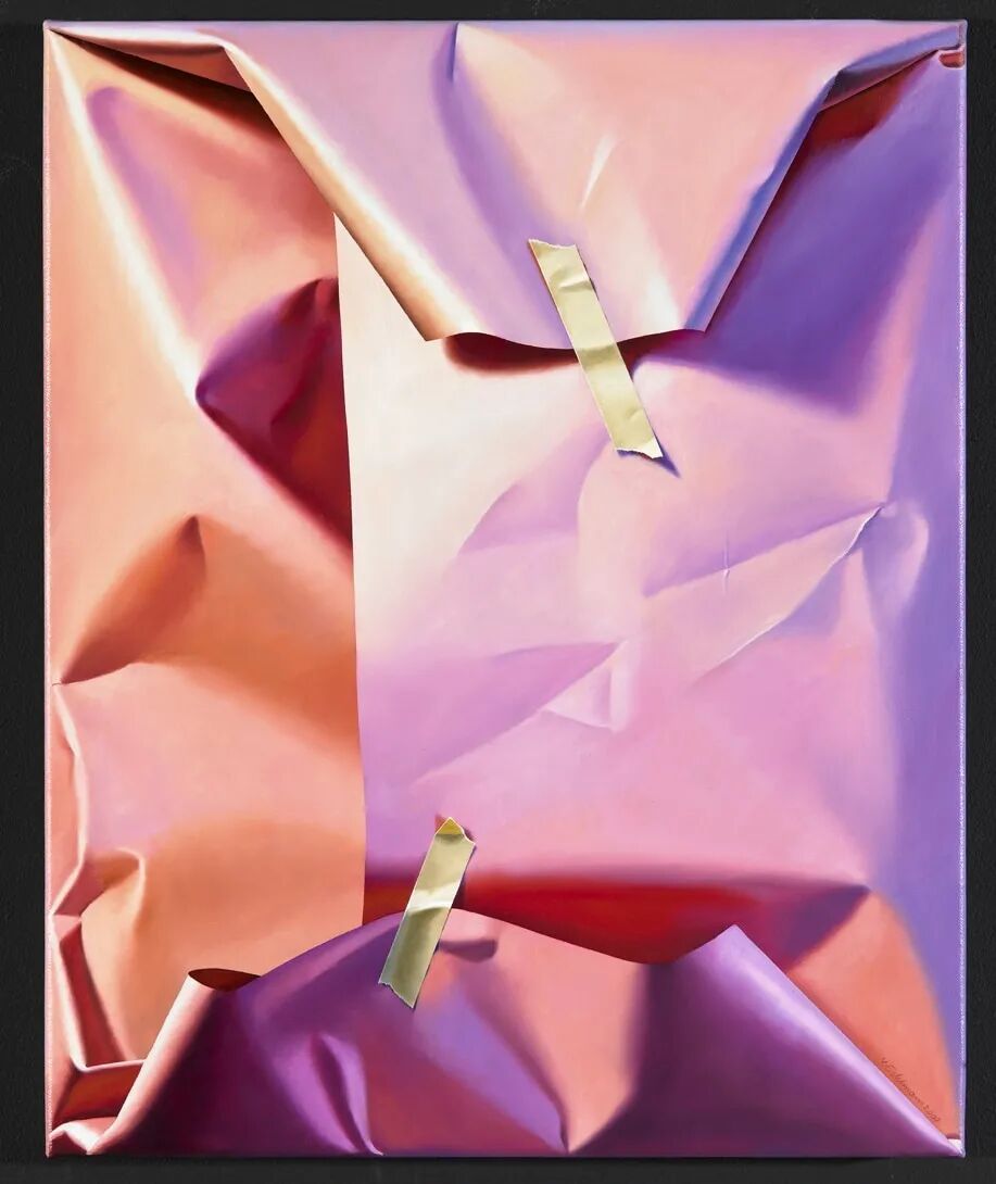 伊尔·杰德曼描绘的,是各种颜色的彩色包装纸,这些包装纸有着超级真实的褶皱和纹理,有的时候在包裹完之后,还会有一根绳子系在上面,或者几条胶带粘在上面,这让伊尔·杰德曼的写实绘画更加真实,如果不刻意提醒,很难将它们与绘画联系在一起。