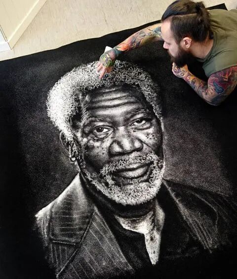 一般情况下,迪诺·托米奇创作一幅作品大概需要一整天的时间,这对于艺术家的体力来说,也是一个非常大的考验。但是,画作最终的效果是惊人的,这些用盐制成的特殊的绘画作品,看起来就像石墨画一样,颜色反转,带给人全新的视觉感受。