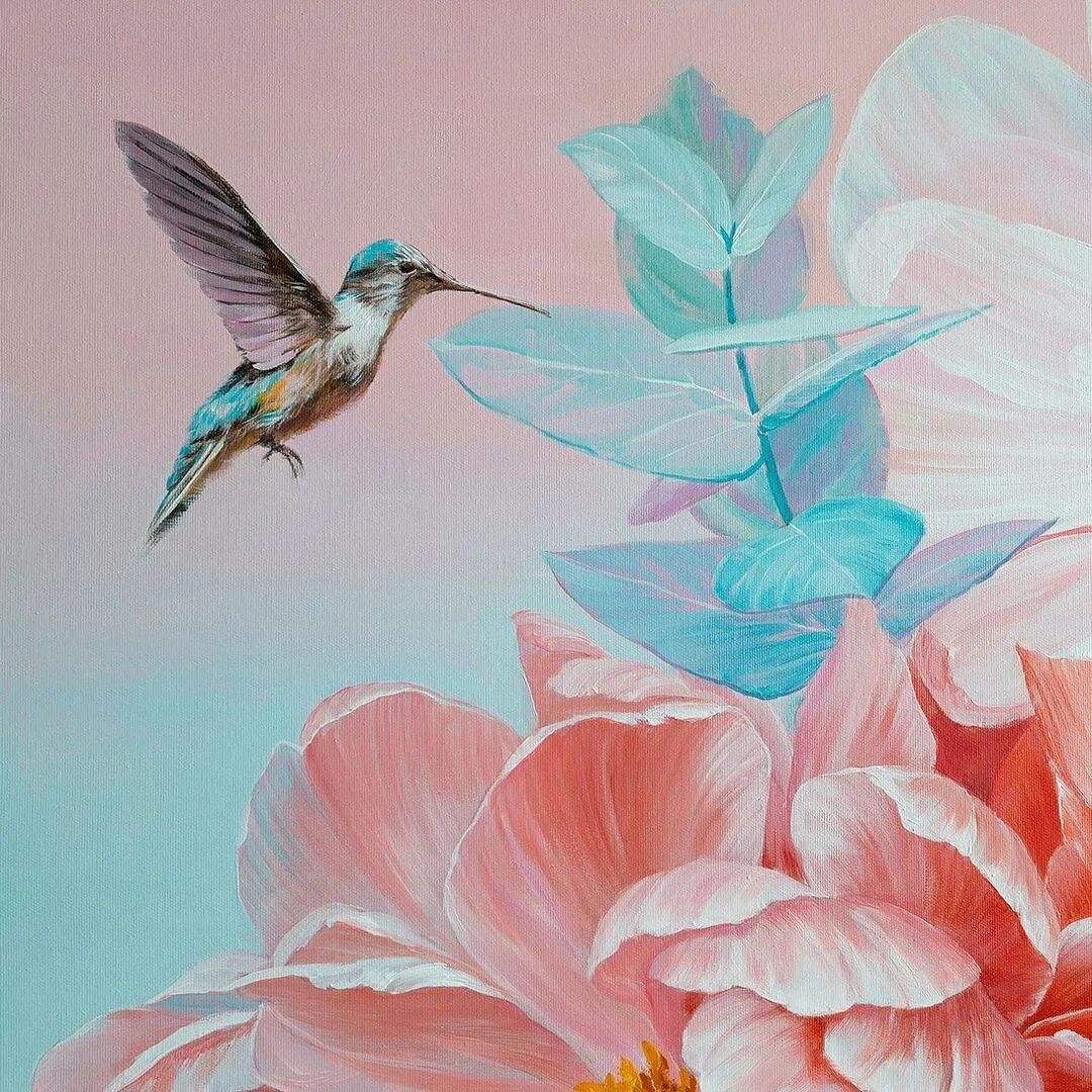 这位艺术家不仅在生活中热爱粉红色,创作的绘画作品也是一片粉红色,她的画作主题以花鸟和女孩肖像为主,大片的粉红色,烘托出甜蜜浪漫的氛围,让人看一眼,就仿佛能够闻到甜甜的味道。