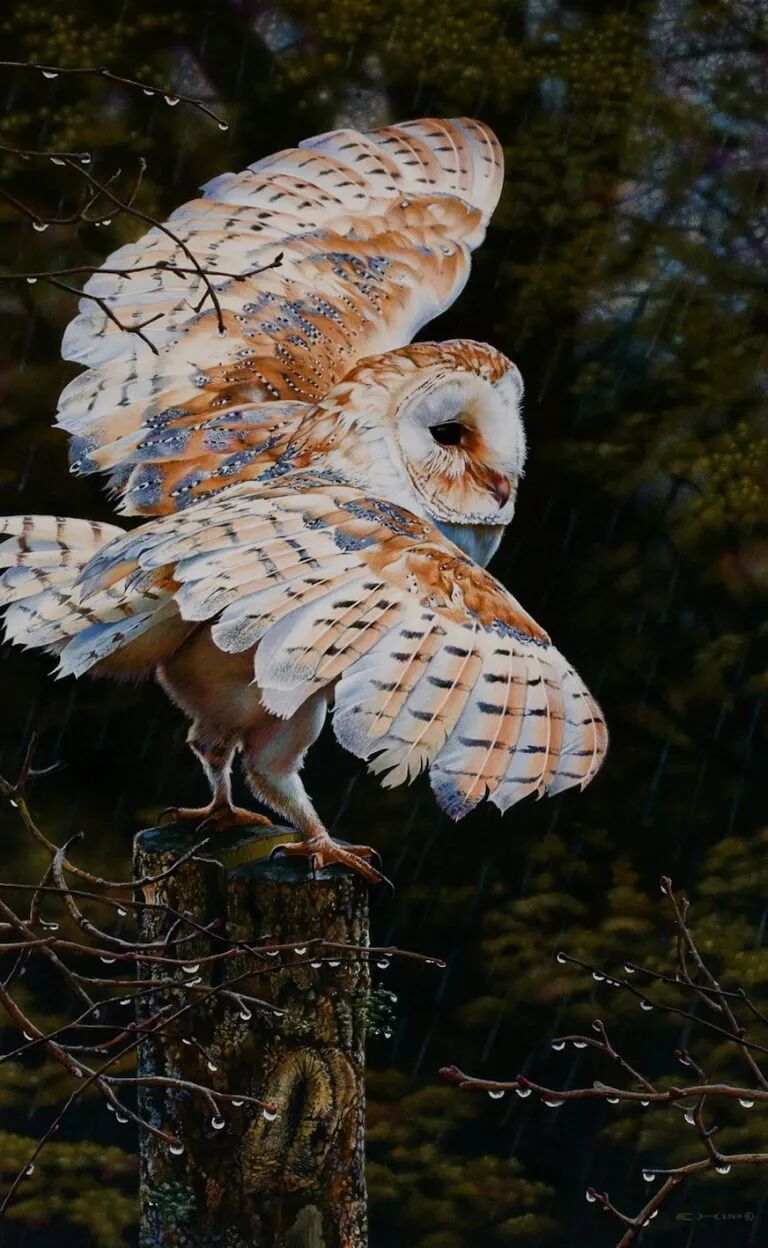 大学的时候,卡莉·格洛文斯基选择的是科学插图专业,从那时起,她便开始研究动植物的习性、结构等,也是从那时候,她知道了很多野生动物濒临灭绝的状况,这让她感到非常难受。毕业后,卡莉·格洛文斯基成了一名专业的野生动物艺术家,居住在一片树林里的一个小木屋里,那里有丰富的野生动物,足够她慢慢研究。