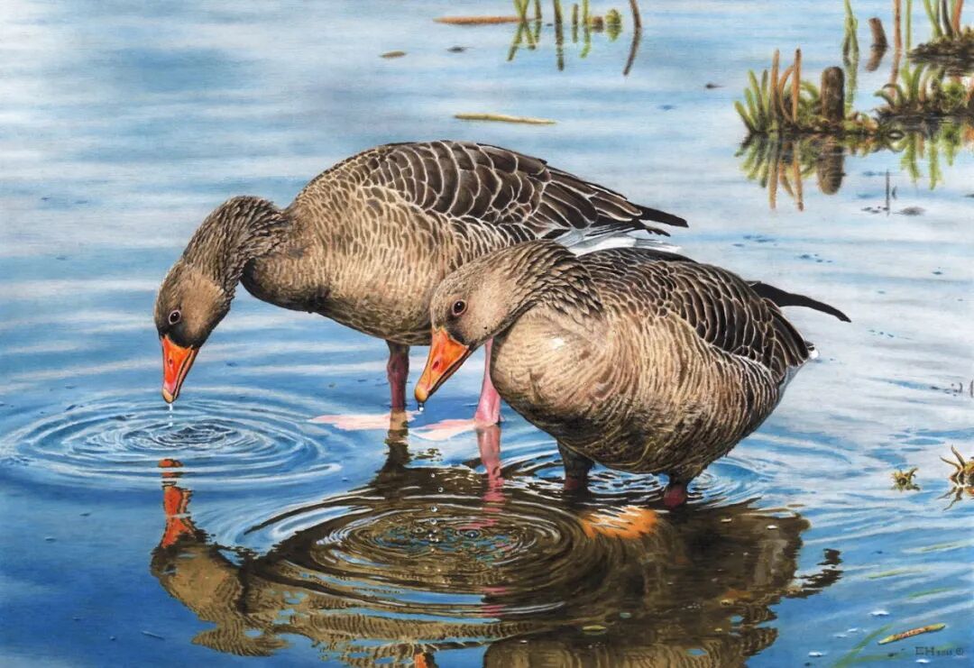 卡莉·格洛文斯基对野生动物的研究,绝不是停留在说说而已,在树林木屋里一蹲就是几年,这位艺术家画了数十本关于动物特性的插图,并写成了论文,画成了画作。接下来,我们就一起欣赏一下这位学术型艺术家,创作的精彩作品吧。