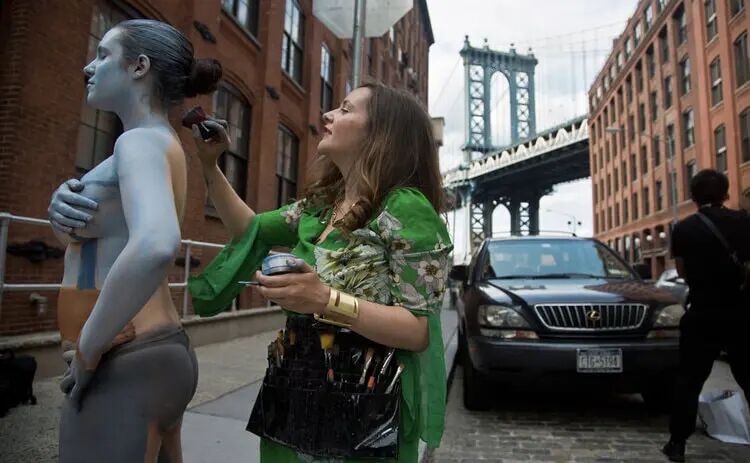 对于专业的彩绘艺术家来说,不论在任何地方画画都不是问题,光线、天气的因素也能克服,最大的挑战来自于模特的状态,因为,与一张画布不同,在绘画过程中,人会出汗,会眨眼,会出现皮肤痒,甚至还会突然想上厕所......任何突发的状况都有可能出现,常常会打断艺术家的创作。