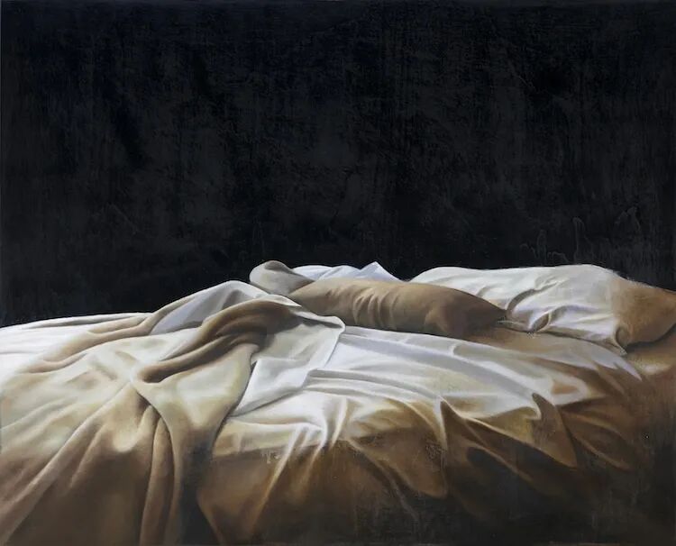 来自美国的视觉艺术家斯蒂芬妮·塞尔皮克,就是一位专注于冷门绘画领域的画家,她画的题材是一张空床,只有被子、枕头和褶皱的床单。除此之外,再也没有其他的事物。