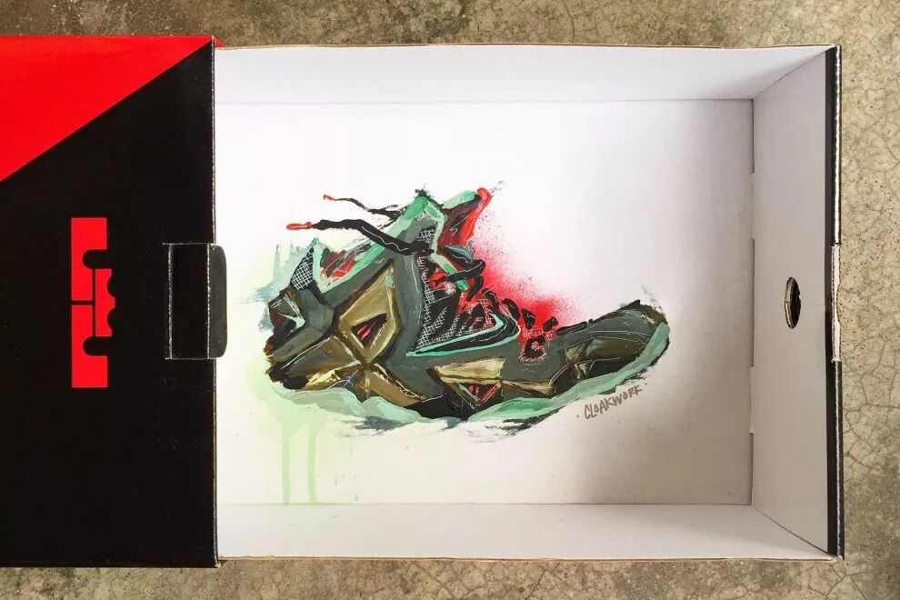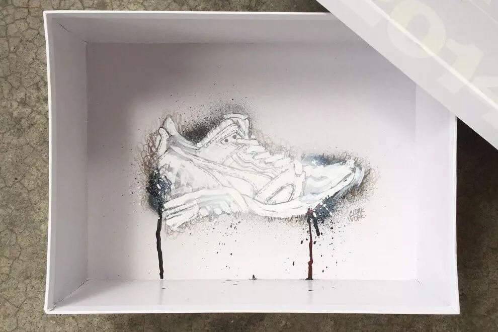 一起欣赏插画师克罗克·沃克复刻的比球鞋本身还有价值的鞋盒艺术品吧。