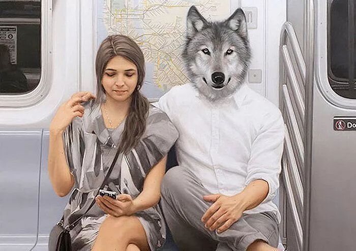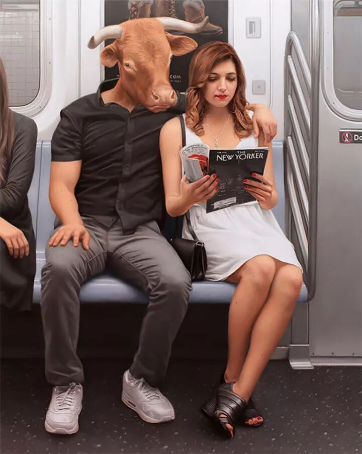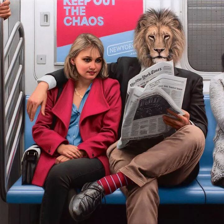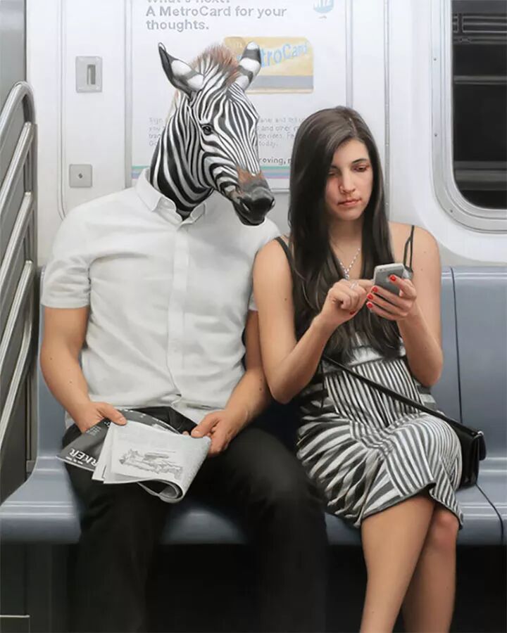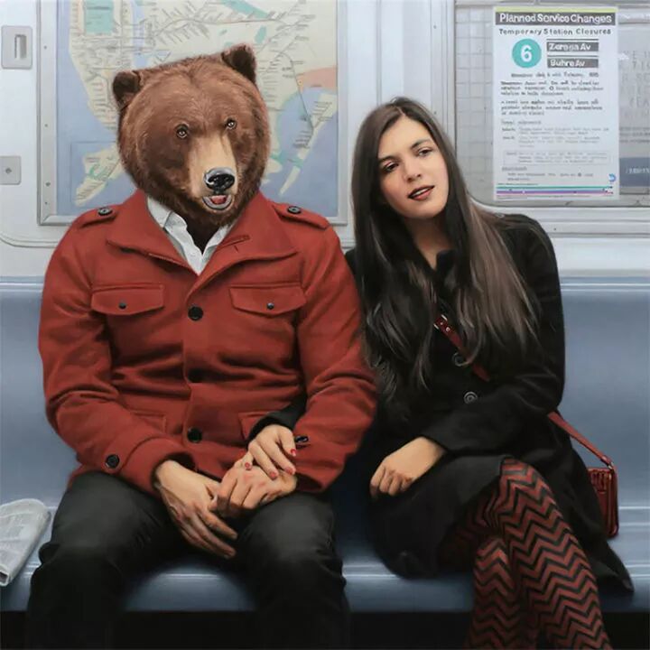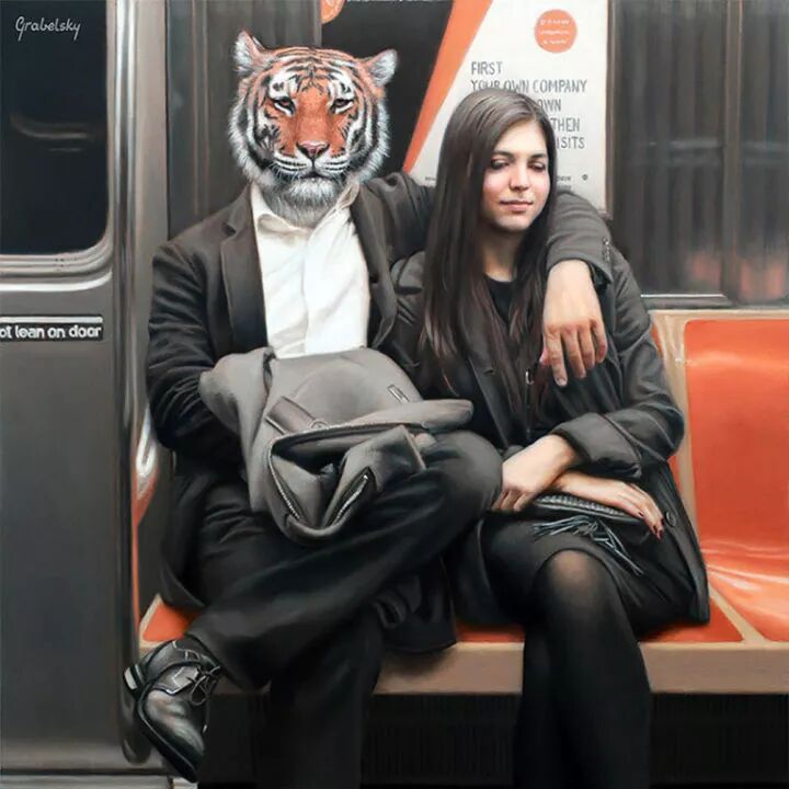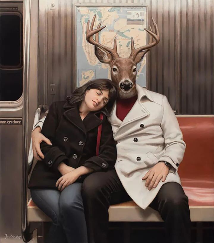 他就是著名的超现实主义画家马修·格拉贝尔斯基,他的动物系列作品一直延续到今天,人类的头顶上却长着一个动物头像,已经成为马修·格拉贝尔斯基的标签,只要看到这种作品,就知道是这位画家创作的。
