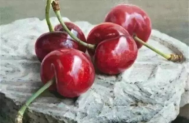 而被称为“小冷军”的超写实油画家蔡杰的作品,也能带给人这种震撼的力量。他曾经画了4颗樱桃,卖出了19万的高价,平均一颗近5万元的单价,都说樱桃太贵吃不起,但是蔡杰画出来的樱桃才是真的贵出天际吧?