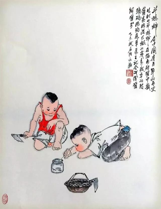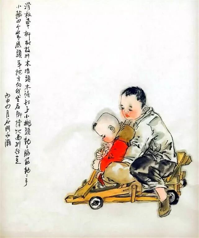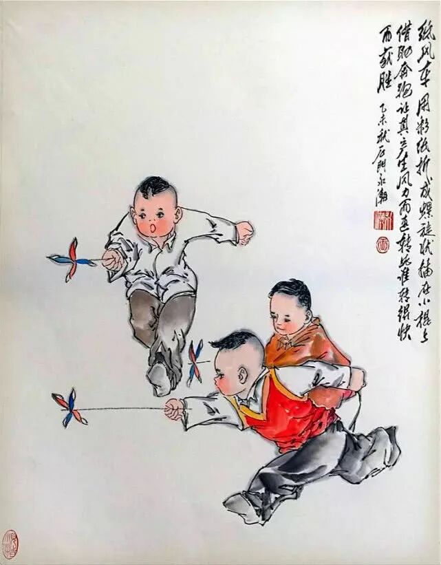 王永潮笔下的《童趣图》十分生动形象,真实再现了那个时代的童真,画中的场景和玩具对于现在的孩子来说,算得上“文物”了,但是对于那时的儿童来说,却是快乐的来源。