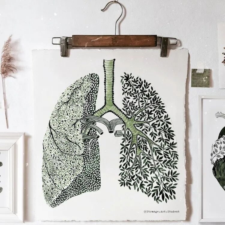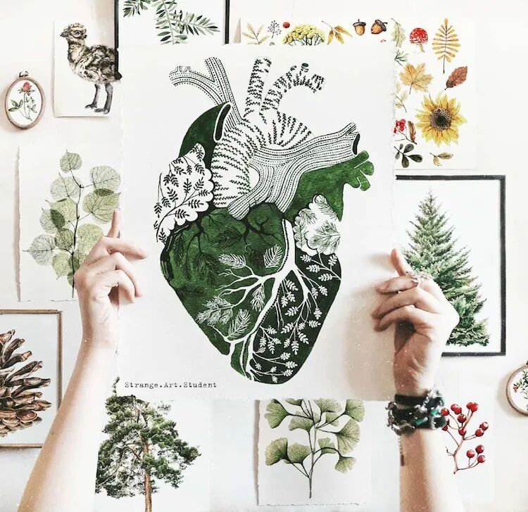或许是因为对描绘自然景物变得没有挑战,于是安娜·拉基蒂娜开始转变为创作超写实的画作,在最近,安娜·拉基蒂娜的超写实作品,就将人类的心脏和自然植物结合到一起,人与自然息息相关的寓意非常明显,另外,还有一幅超写实作品,描绘的是人类的肺部,不过也都变成郁郁葱葱的树木,森林不仅是地球之肺,还是人类之肺的寓意呼之欲出。