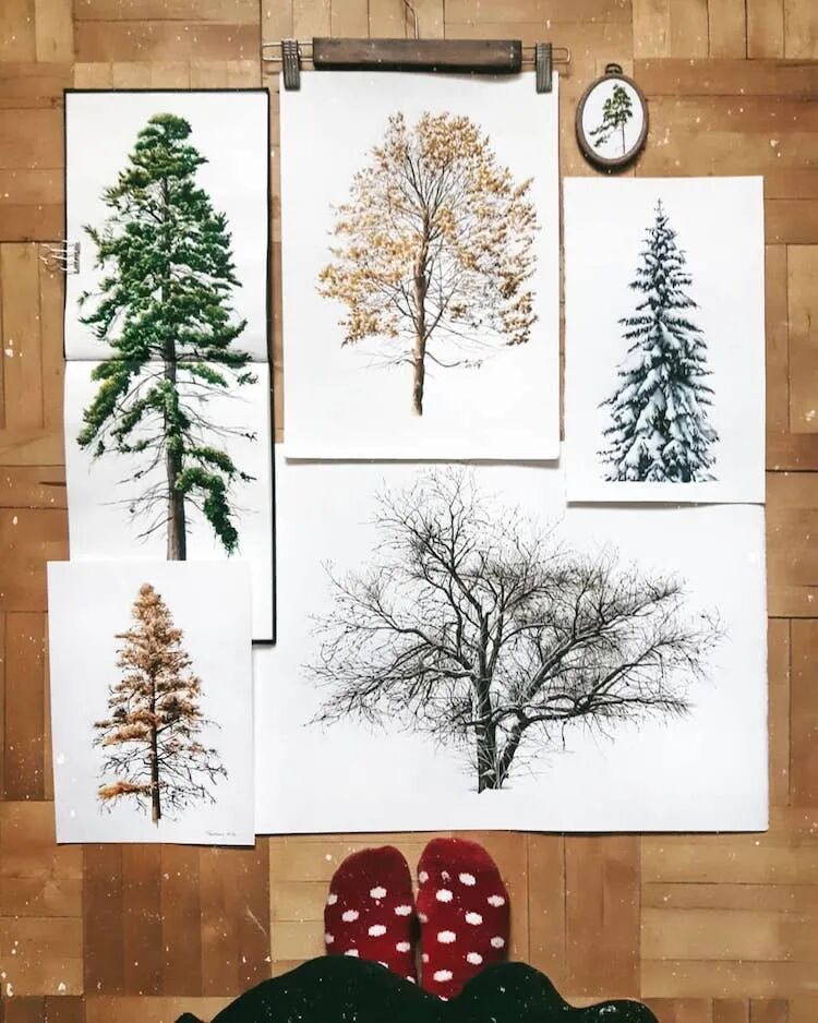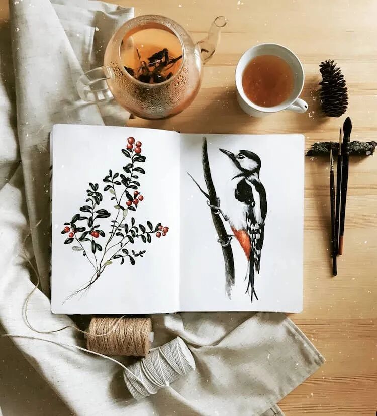 安娜·拉基蒂娜的水彩插画作品,主要描绘的是大自然的景象,有反映人与自然相结合的插画,也有单纯描绘自然景物的作品,无论是高大的松鼠,还是真菌和花朵,她都用堪比机器才能做到的精致程度,将它们描绘下来。