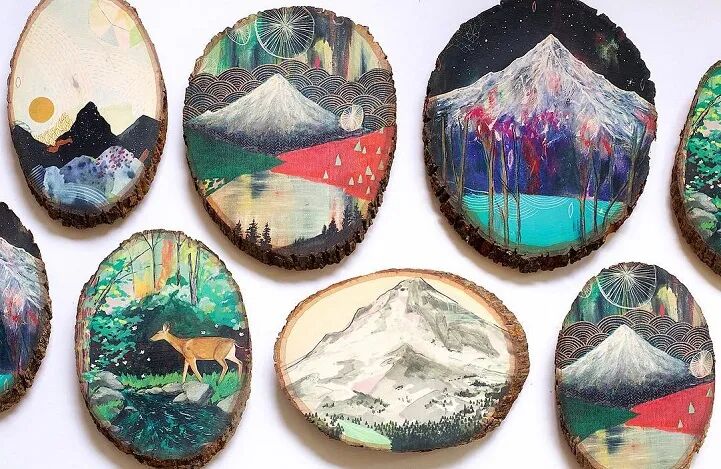 在木头上画画的艺术家并不少,但是像艺术家凯西·麦克默里一样,画得既迷人又质朴的,却非常少。这位艺术家非常喜欢描绘户外的场景,在原始的木材的纹路上,画出美丽的山脉、大海以及各种自然景观,以一种奇怪、有趣的方式捕捉了户外的奇观。