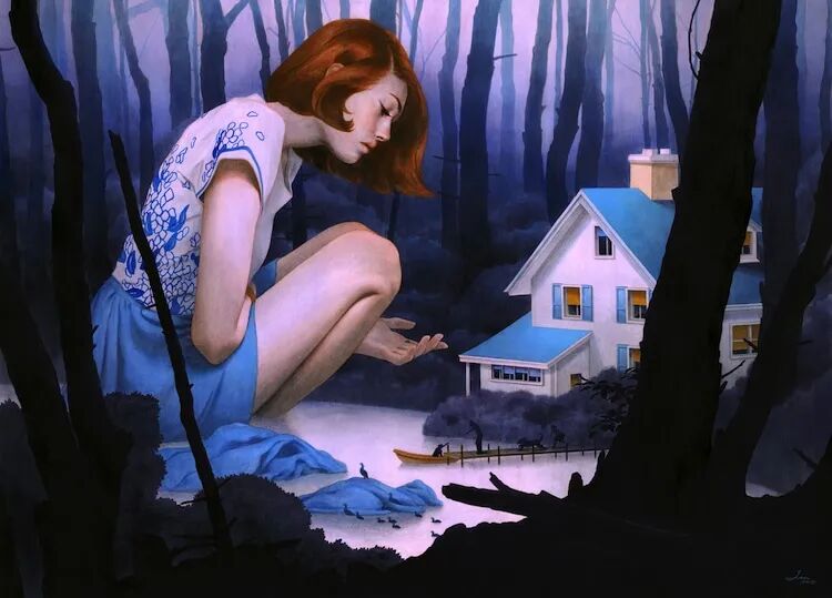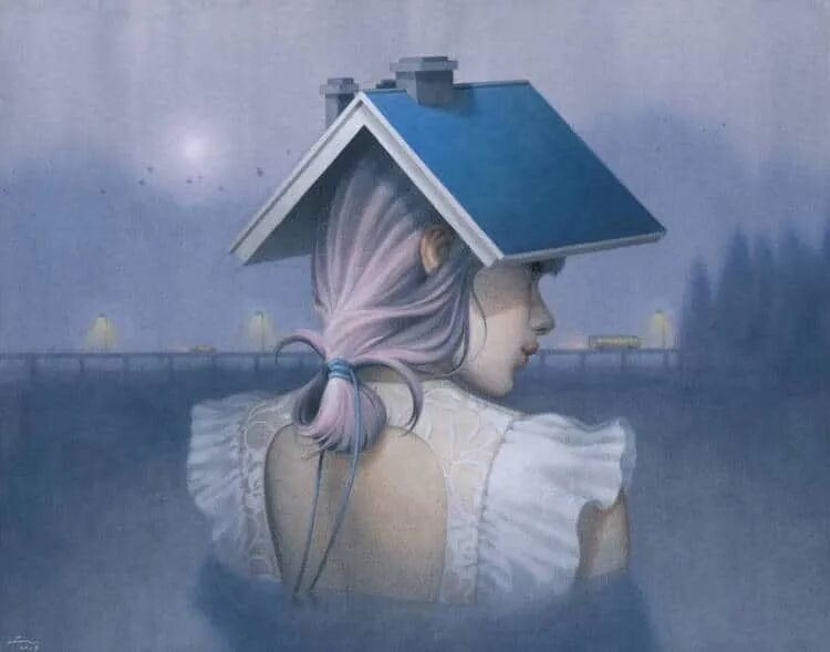 陈阮说:“我喜欢在作品中创造一种看起来平常的氛围,然后再去打破这种氛围,去给画作添加超现实的色彩”。特别的用意,让我们的目光被这些画作深深吸引。