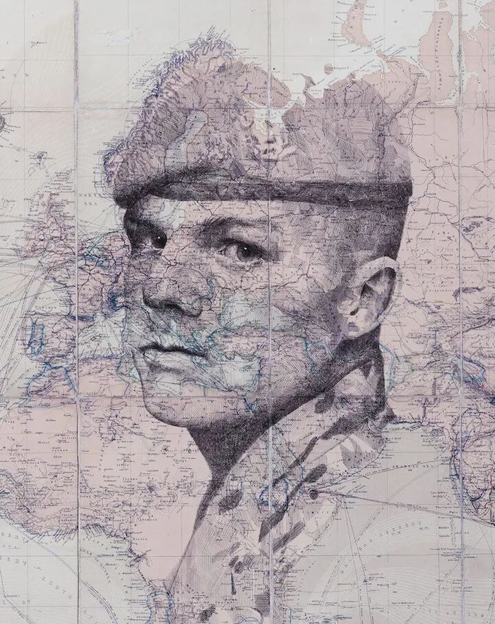 这位才华横溢的艺术家从三年前就开始尝试在废旧的材料上来画画了,从旧报纸、旧地图到旧书籍,每一张看似无用的纸张,都被他重新启用,创作的肖像画写实、生动,还散发着独特的味道。