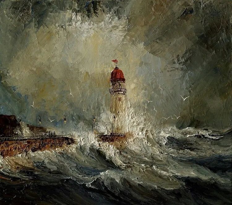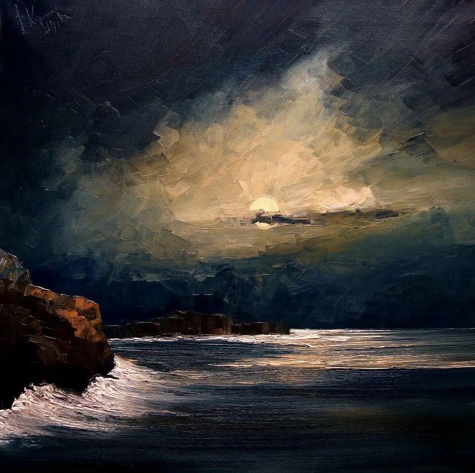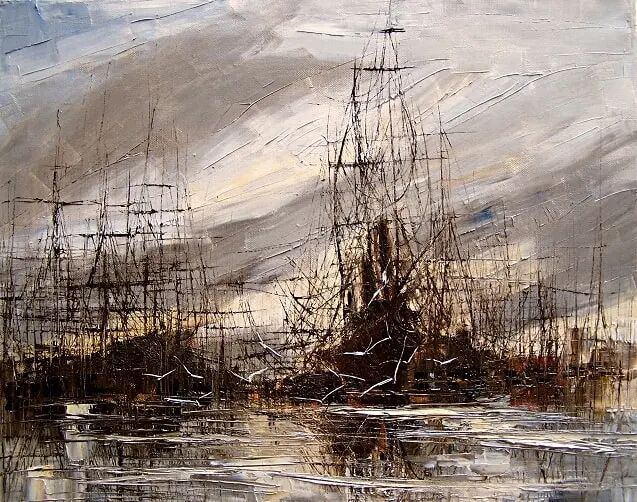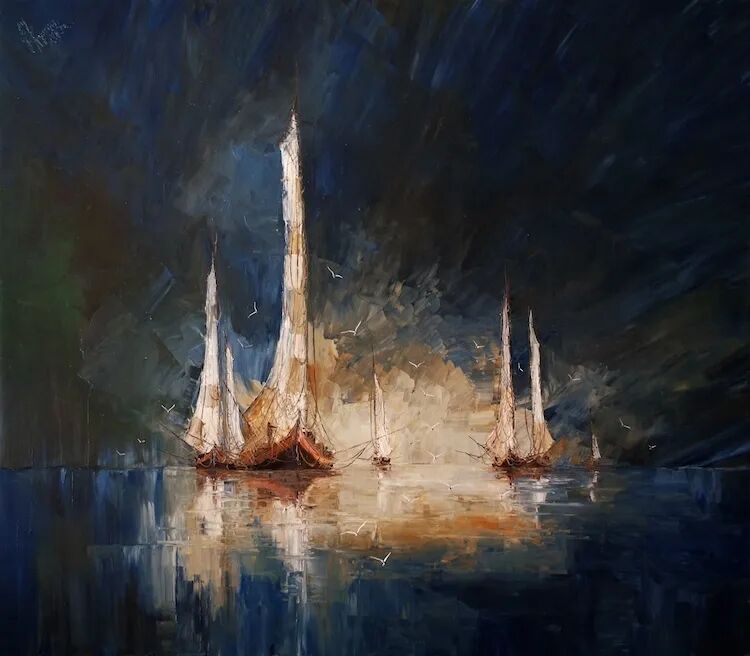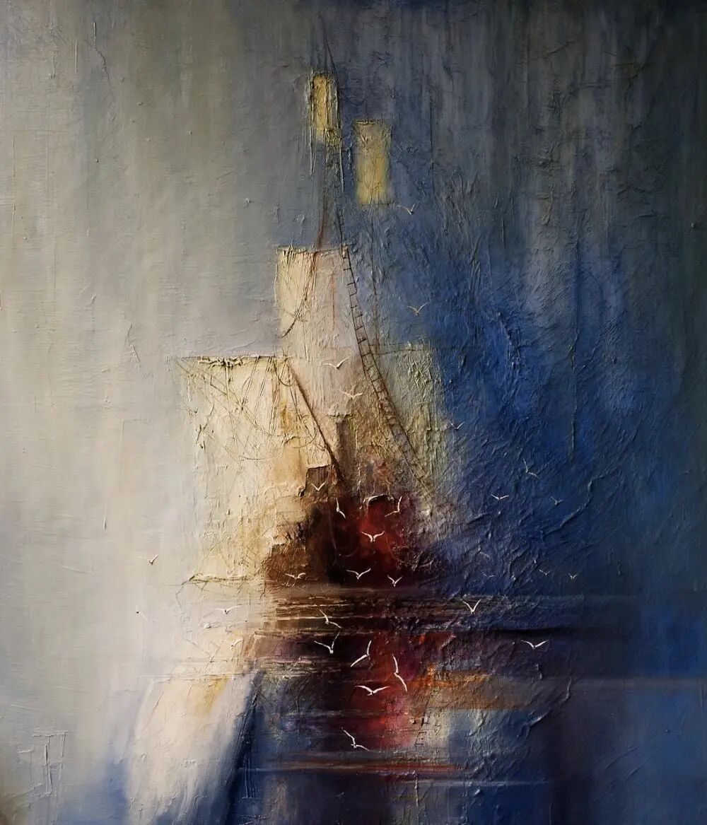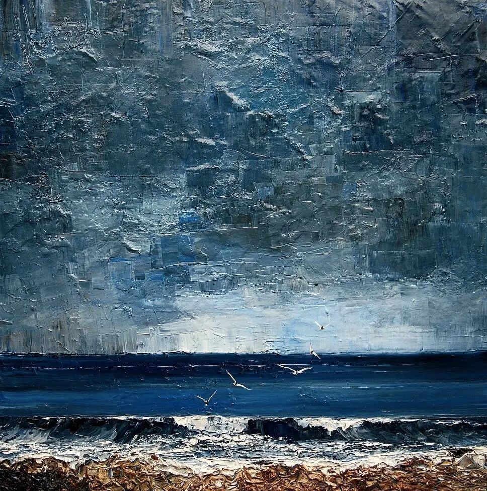 贾斯蒂娜·科帕尼亚是一位来自波兰的艺术家,她的画作并不算写生,却可以通过在画作上堆积出来的肌理,让欣赏者看到和感受到她描绘大海的广阔。作为传统的画家,她也是现当代“为数不多”的架上画家。架上绘画并不神秘,甚至,还有些普通,所有在画架上绘画的艺术家,都可以称为架上画家,之所以小绛说架上画家为数不多,主要是因为,在现当代艺术的冲击下,许多富有创意的作品都开始选择其他的绘画材料与工具,能坚守架上绘画,并通过架上绘画扬名的画家,与现当代艺术相比,数量并不算多。