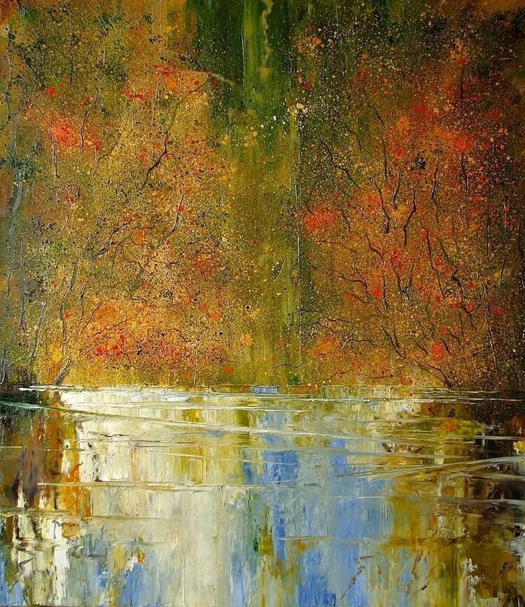 贾斯蒂娜·科帕尼亚说:“我钦佩大自然,我的画作反映了我用所有感官感知的世界。”她确实也通过自己的作品,将大自然转瞬即逝的美景,捕捉到画布上,肆意潇洒的笔触与大量堆积的颜料,似乎也能让人们感受到她的洒脱和快乐。