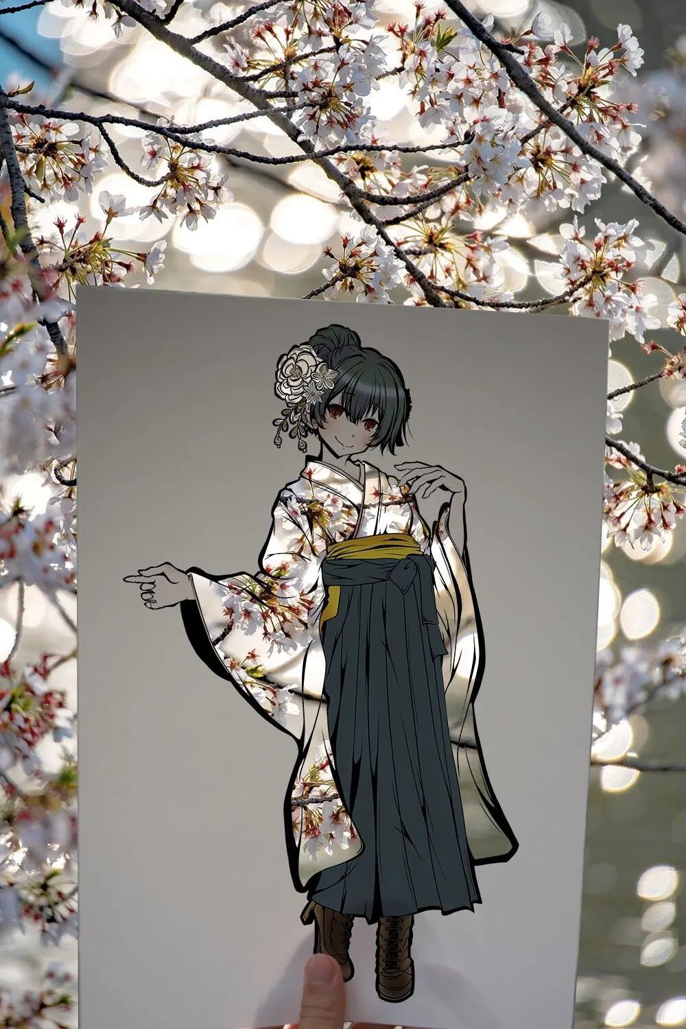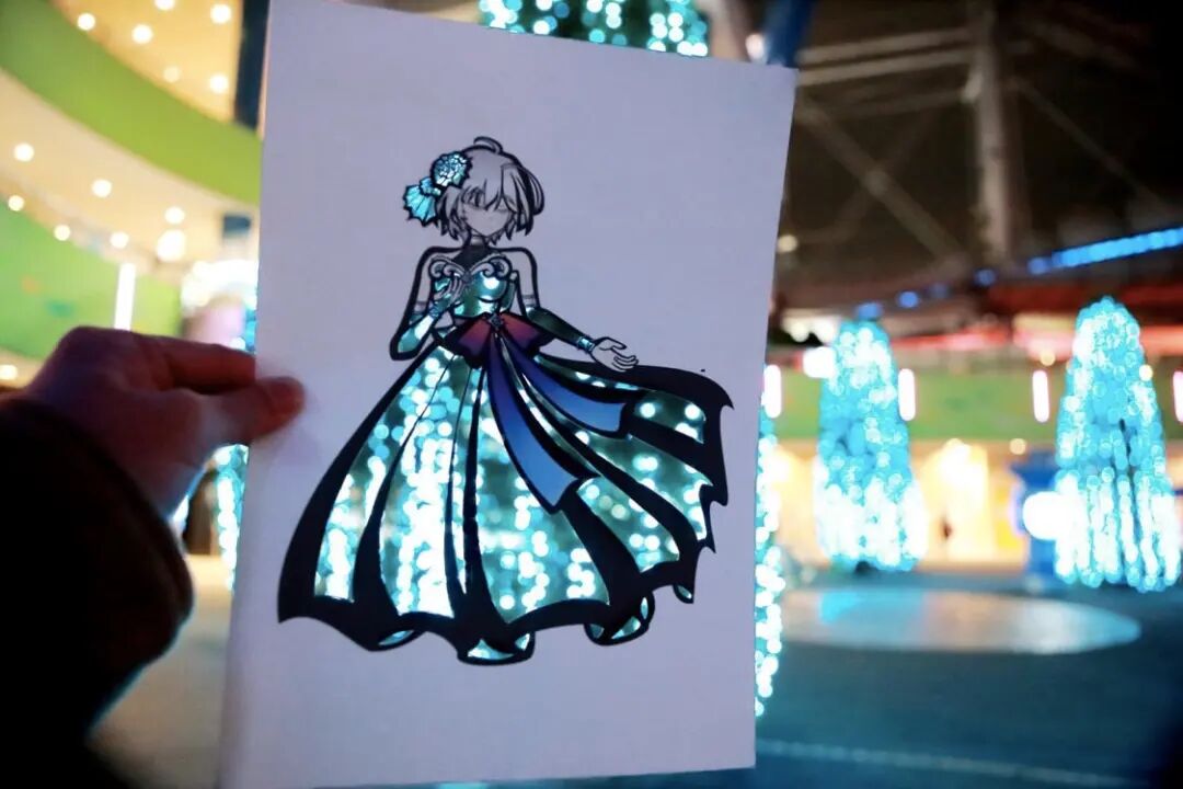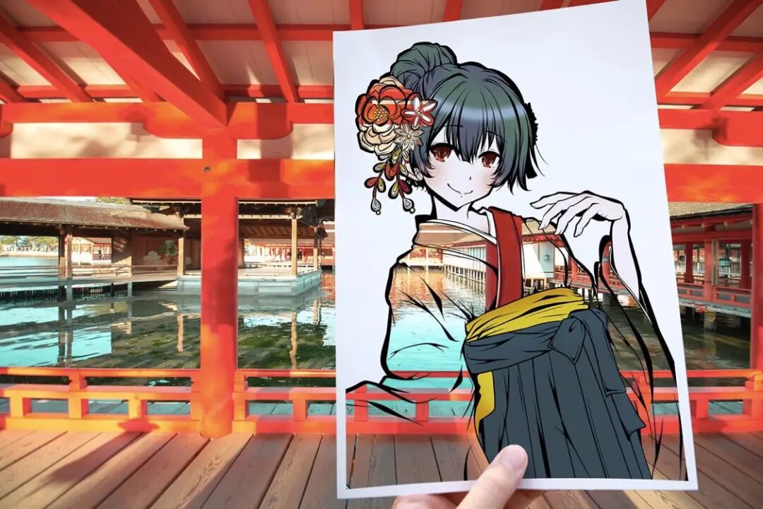 这位艺术家最喜欢在日本的金秋时节,带着自己的绘画作品去到户外,秋日的阳光带给作品更多的阴影和图案,金黄色和暖橙色的秋叶在镂空的部分闪耀着光芒,纸张上的和服女孩带着甜美的微笑,活力四射的样子,把人的心都暖化了。