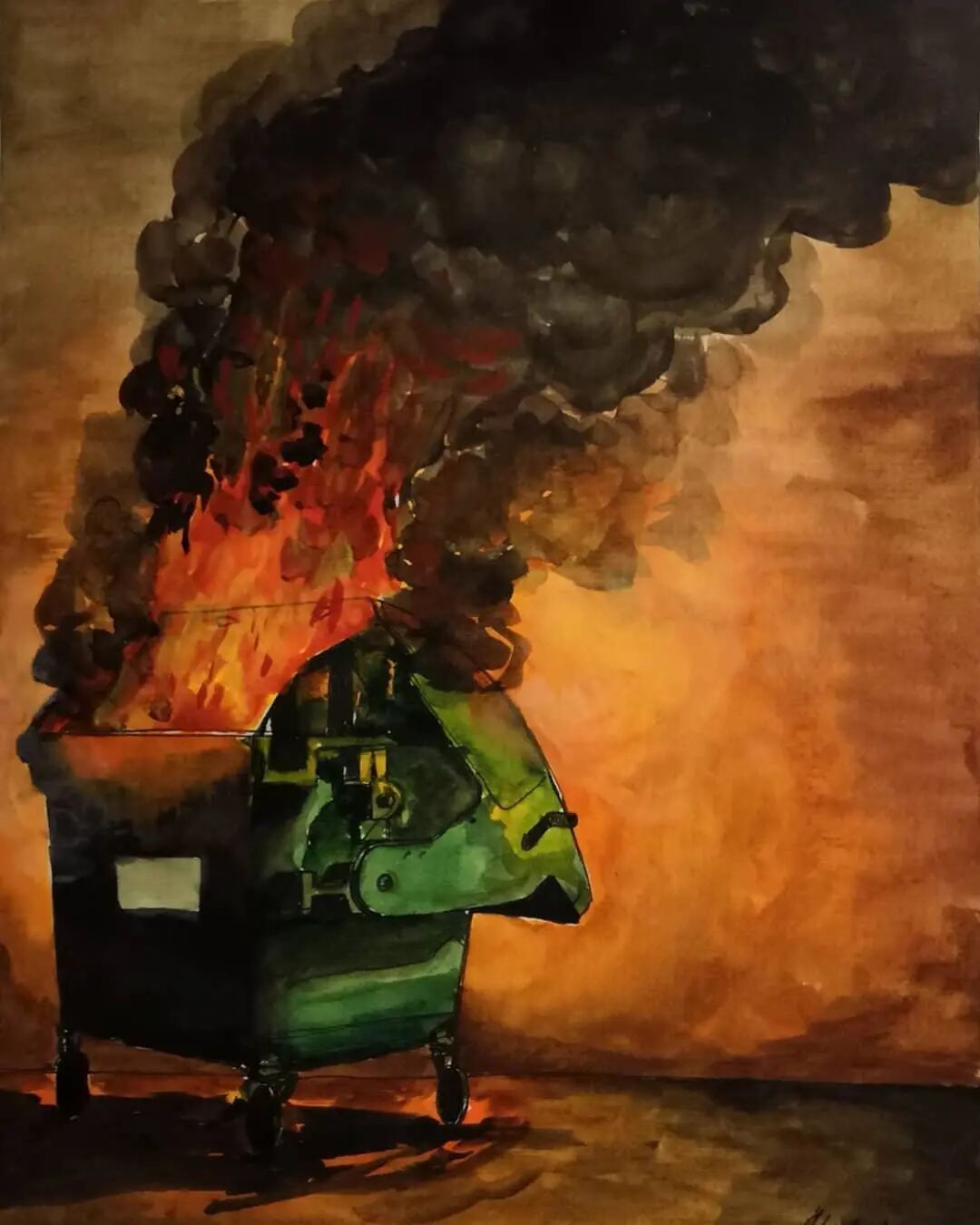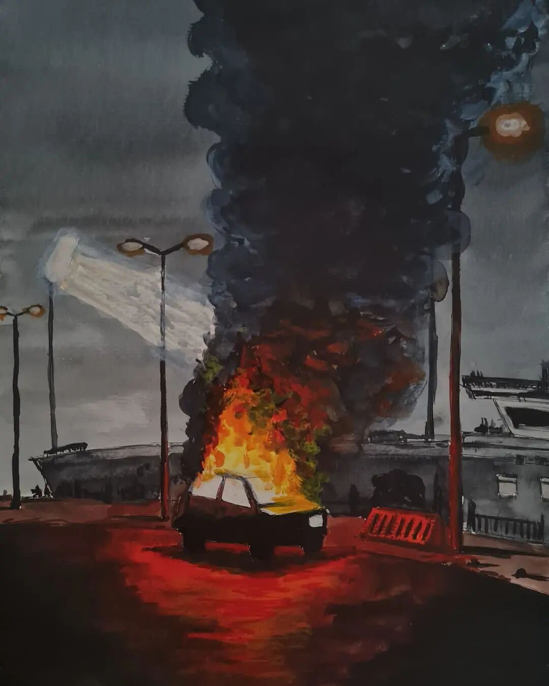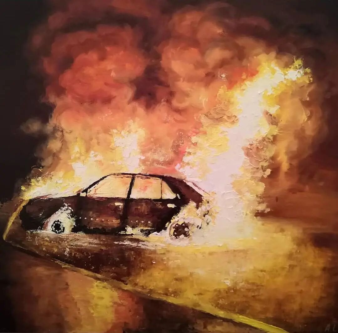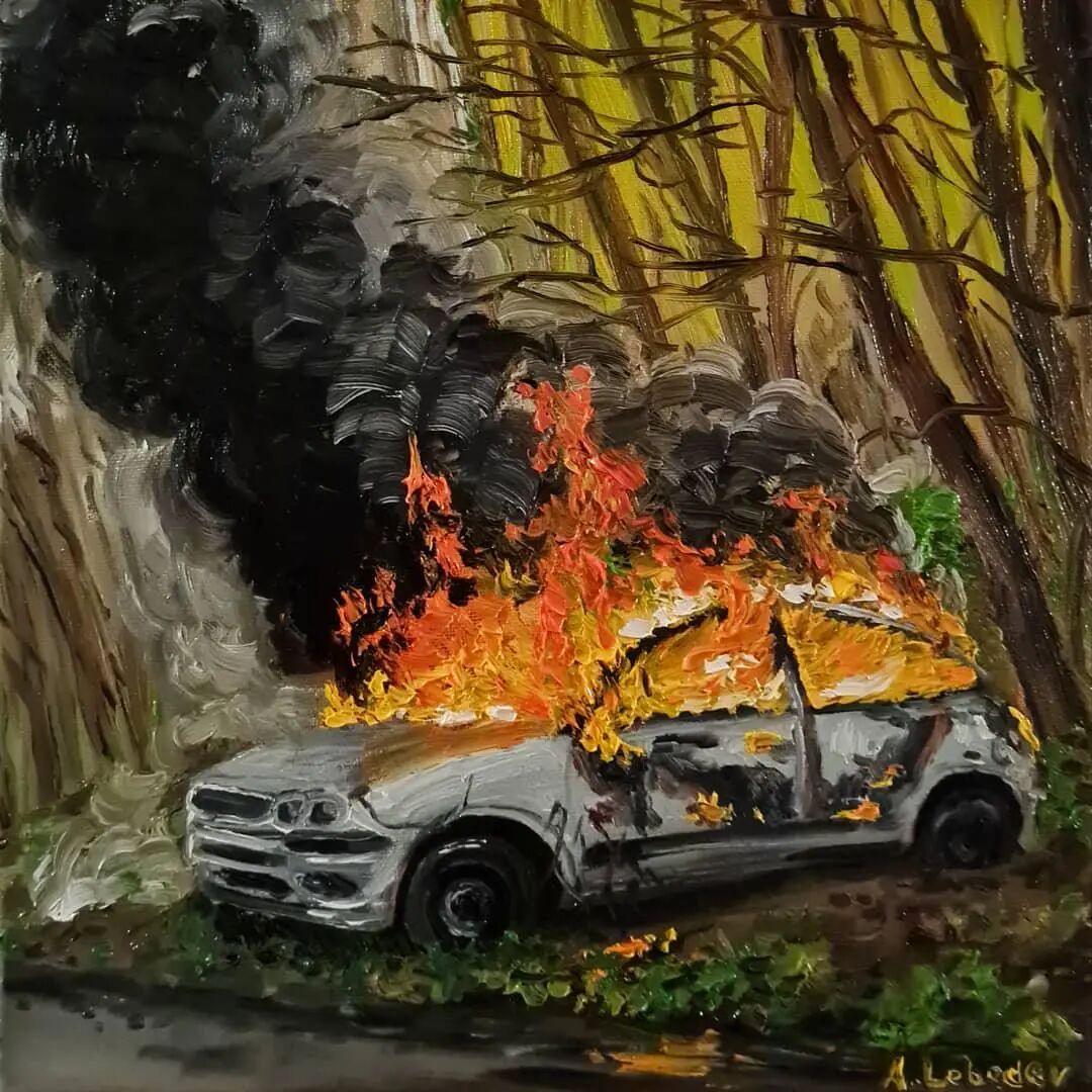 这些场景有燃烧的车辆、森林大火等等,真实到令人着迷,接下来我们就一起欣赏一下这位艺术家创作的一系列逼真的着火厚涂油画吧。