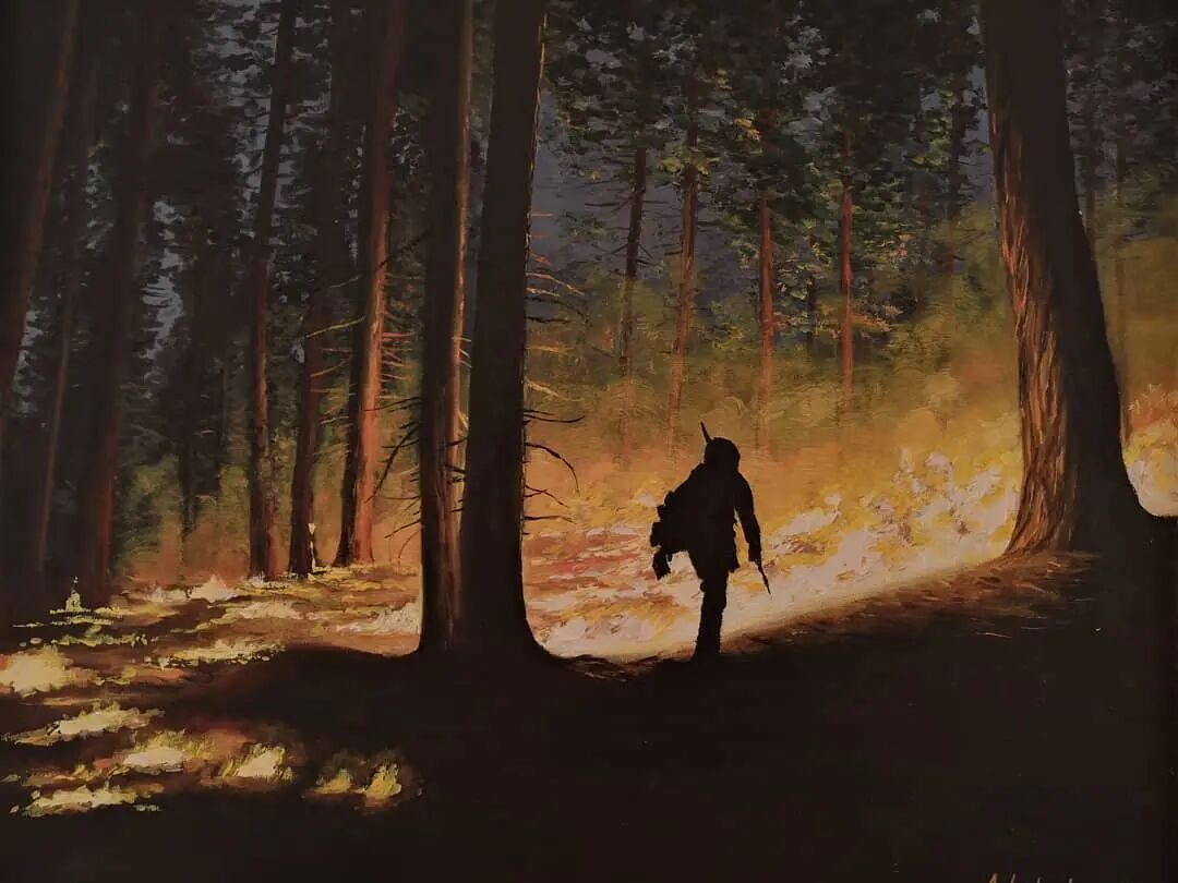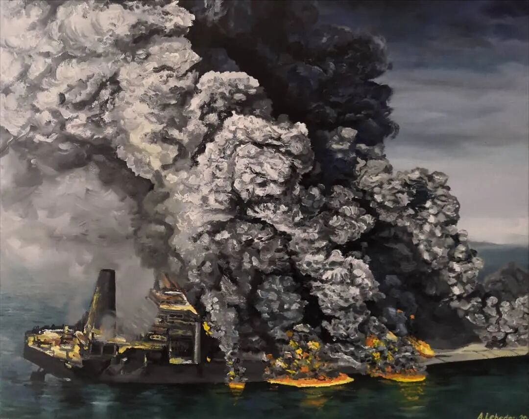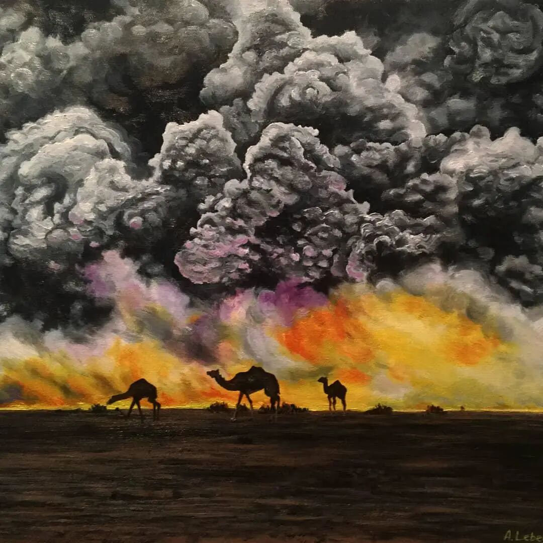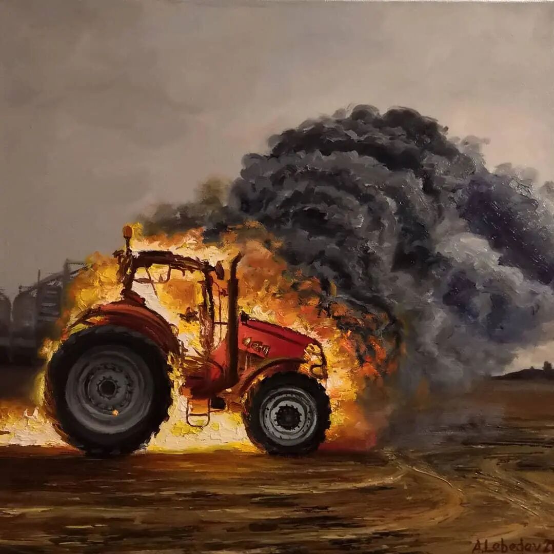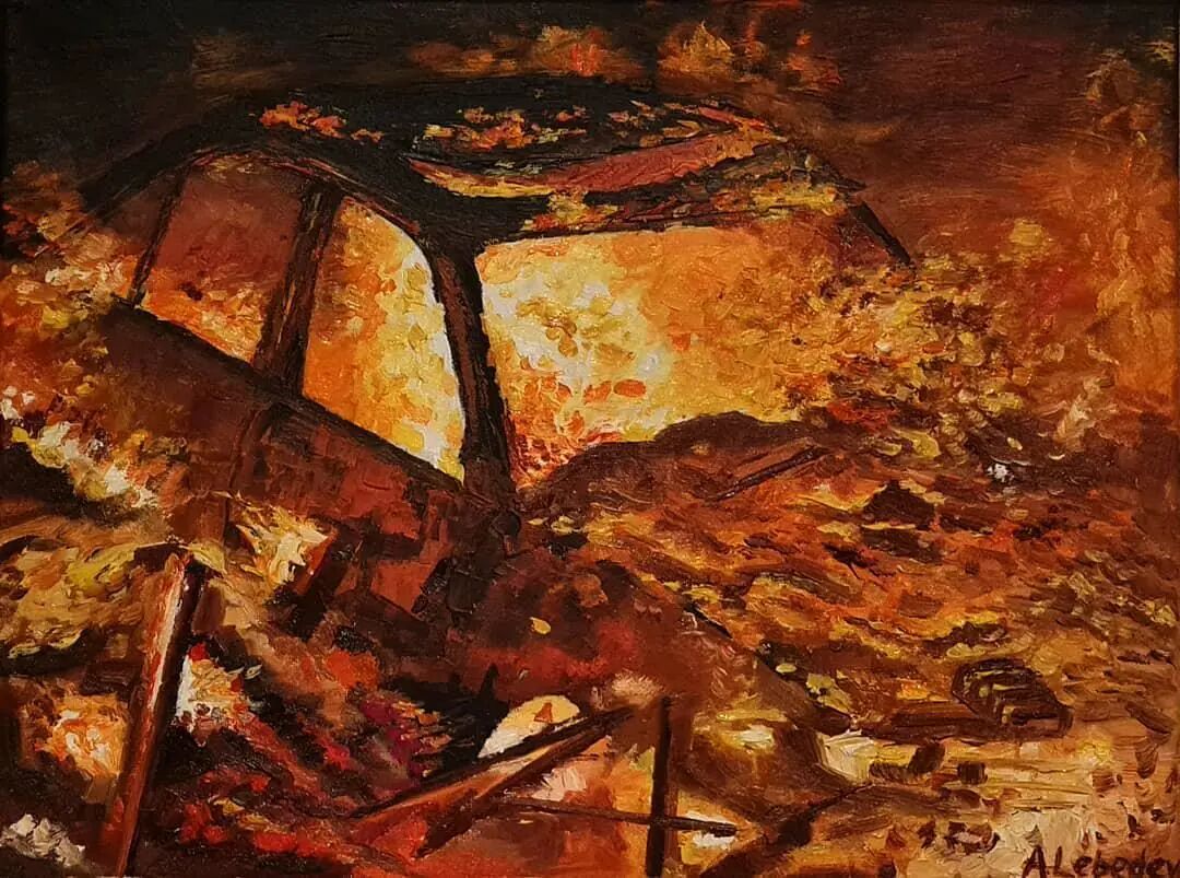 安东尼·列别捷夫一度有点“走火入魔”,哪里发生山火,他都要驱车前去,远远地看,被赶出来,被骂“不怕死”是常有的事。总之,付出得到了成果,这位俄罗斯艺术家画出了如真实场景一般的火焰,熊熊燃烧的火苗以及滚滚浓烟,让人仿佛亲临现场,真实的灼热感隔着画布扑面而来。