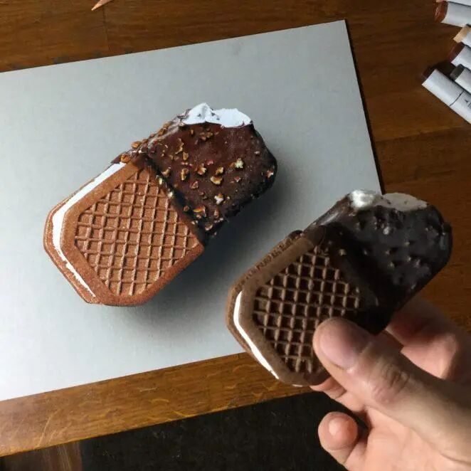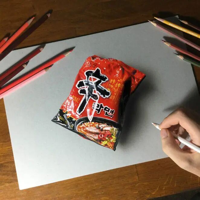这位艺术家拥有的神奇技能,就是在纸上画出令人惊叹的超写实绘画,3D效果带给人超强的真实感,画中的物品仿佛触手可及,伸手就能拿起来。当实物与画作摆在一起的时候,竟让人一时无法分辨,哪一个是假,哪一个是真。