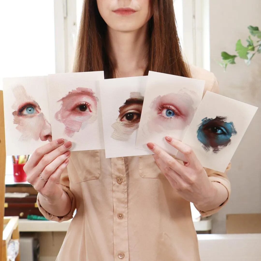 由于没有正式学习过绘画,扎琳娜都是自己摸索着绘画,从一个小局部开始,比如说手部和眼睛,到今天也是一样,她主要创作的题材也是手和眼睛。虽然只是人体的局部,她却用独特的绘画方式,让作品变得充满诗意,整幅画面上只有一双手,也不会让人感觉到枯燥无味。