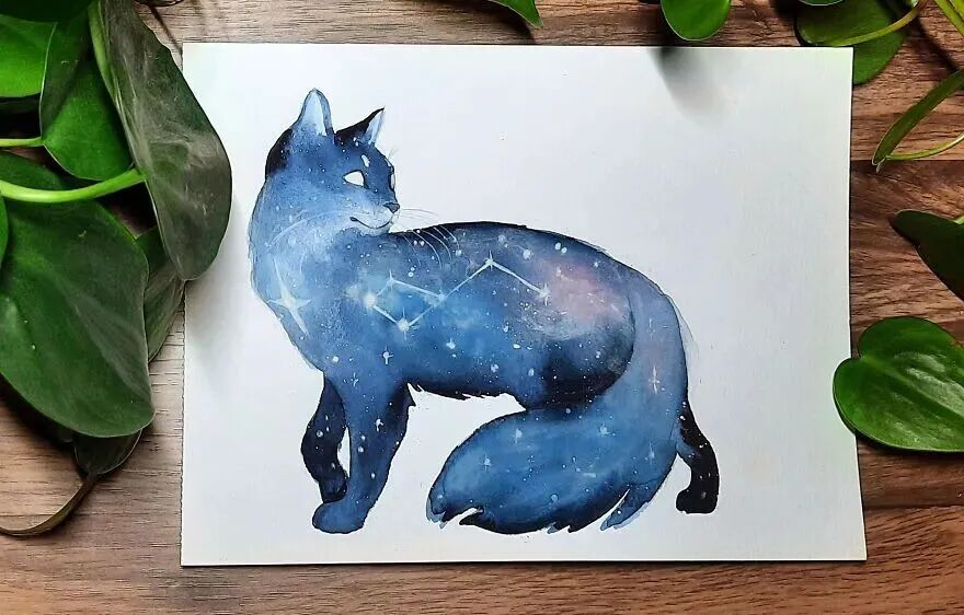 最近,一位名叫三叶的瑞士设计师,却凭借一组简单的水彩画作受到许多人的欢迎,她的水彩作品主要以星空动物为主,动物的轮廓中蕴含星空插图,给人一种梦幻的视觉体验,不过,这种类型的水彩画作,一般美术专业的高中生就可以画成,在细节和色彩运用方面,或许比这位名叫三叶的设计师还要好。