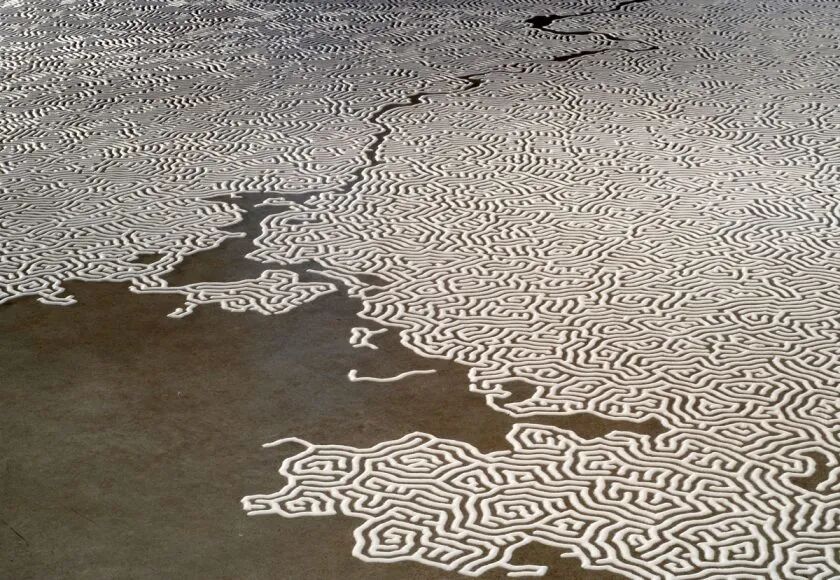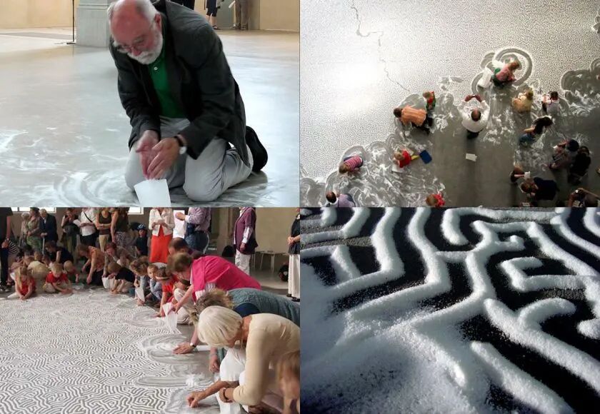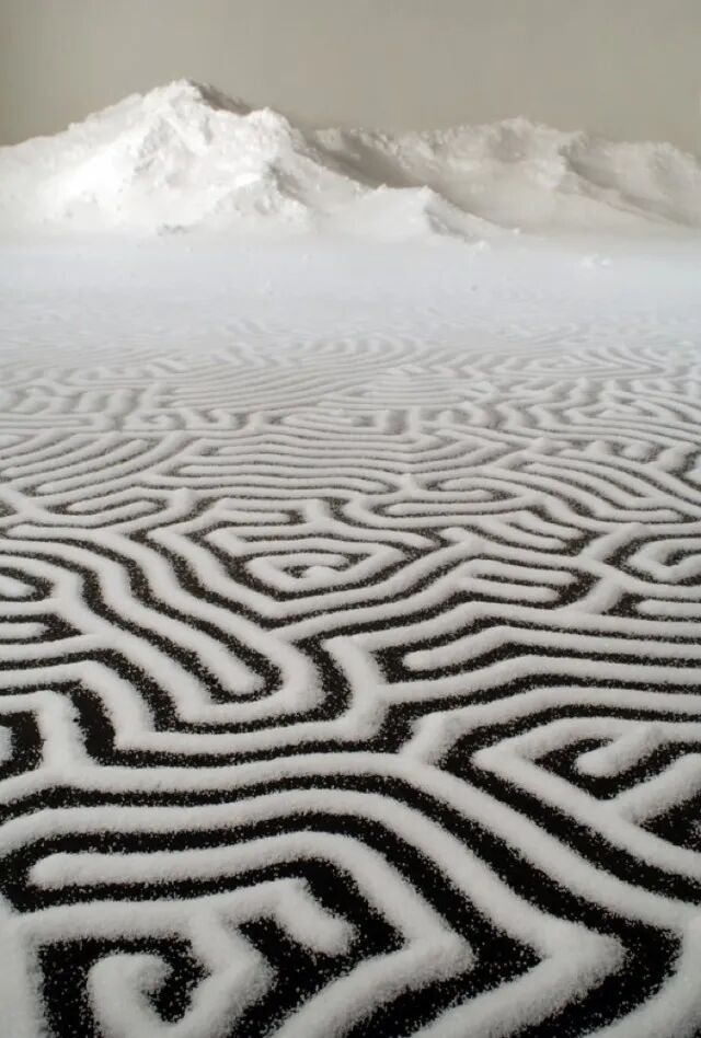 小绛之所以将山本元井成为世界上最“咸”的人,是因为他创作艺术作品的材料是盐,盐是他的颜料,而画笔则是他的双手。