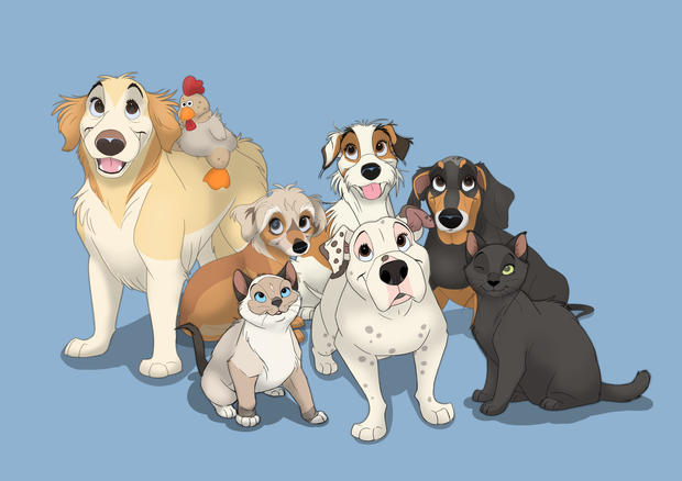 不得不承认,伊莎·布雷特的插画作品,不仅拥有迪士尼的画风,还有了迪士尼的神韵,每一只宠物都非常可爱,仿佛也会有专属于它们的冒险故事。