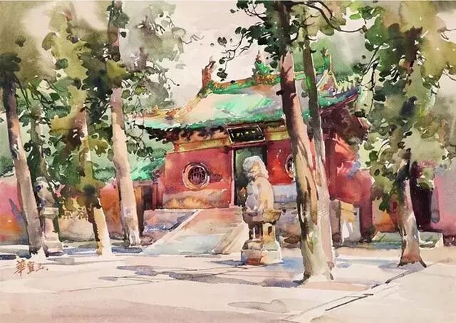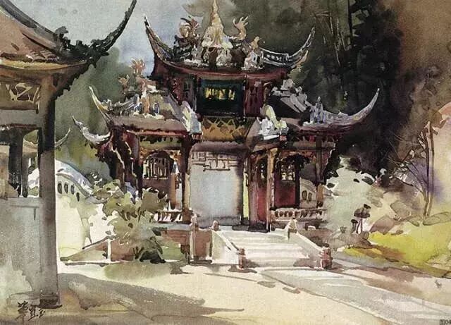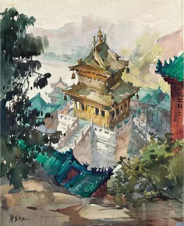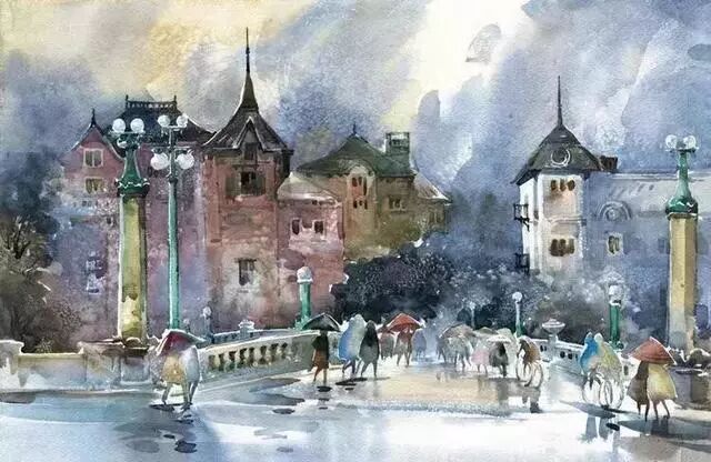 下面就随油画酱来看一下,这位清华大学建筑学院教授华宜玉的水彩作品吧。