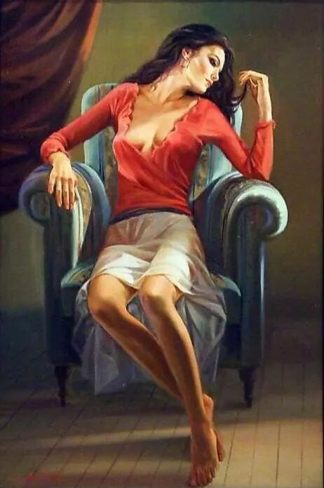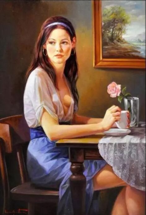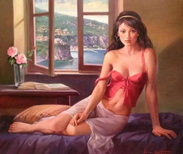 每一个女性形象在她的笔下都展现出了十足的魅力,妩媚性感。艺术家对冷暖色彩的独特感知、耀目的光影把握,以及人物形态的精准捕捉,生动到位。人物一下子生动鲜活起来,散发出浓浓的女性魅力。